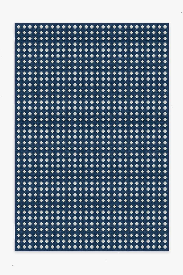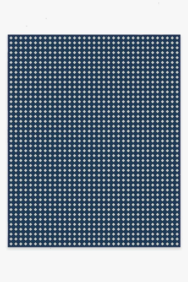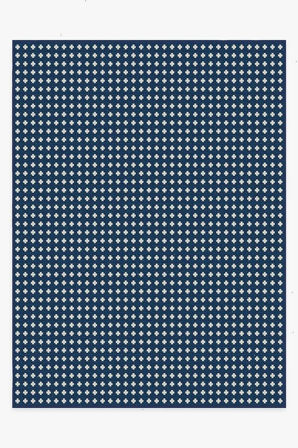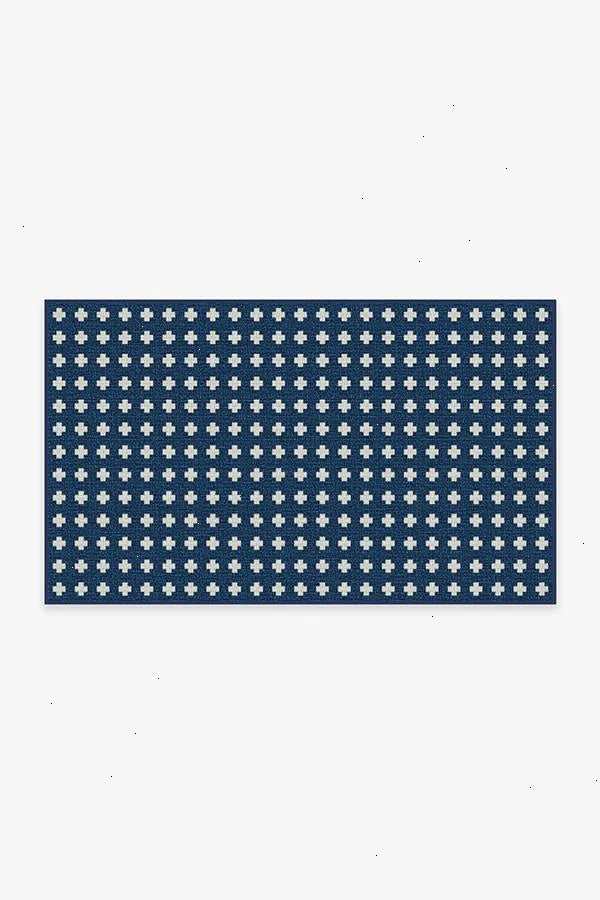 A timeless style. Our Adde Navy Rug will make a subtle statement in any space. Small white cross motifs dot this dark blue rug, a simple design for elevated tastes. The extra-durable, machine-washable material is perfect for both outdoor and indoor use, especially high-traffic areas and those exposed to the elements.