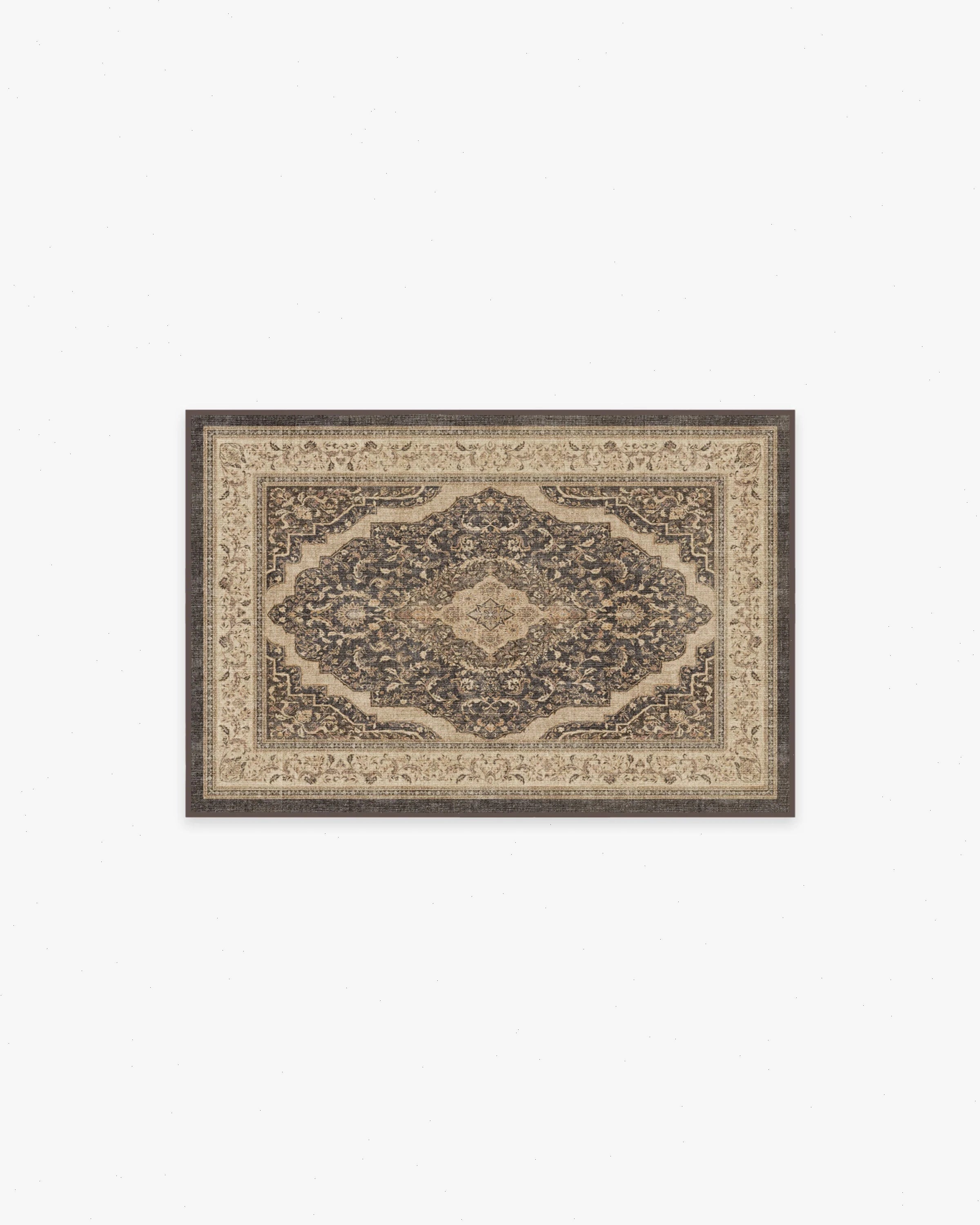 Elaborate elegance. Our Adeline Dark Wood Rug boasts a subtly distressed medallion design inspired by antique European rug patterns. It's decorated in botanical details in rustic shades of brown and black contrasted with regal pops of gold, coral, beige, and taupe, surrounded by an equally intricate vine border.