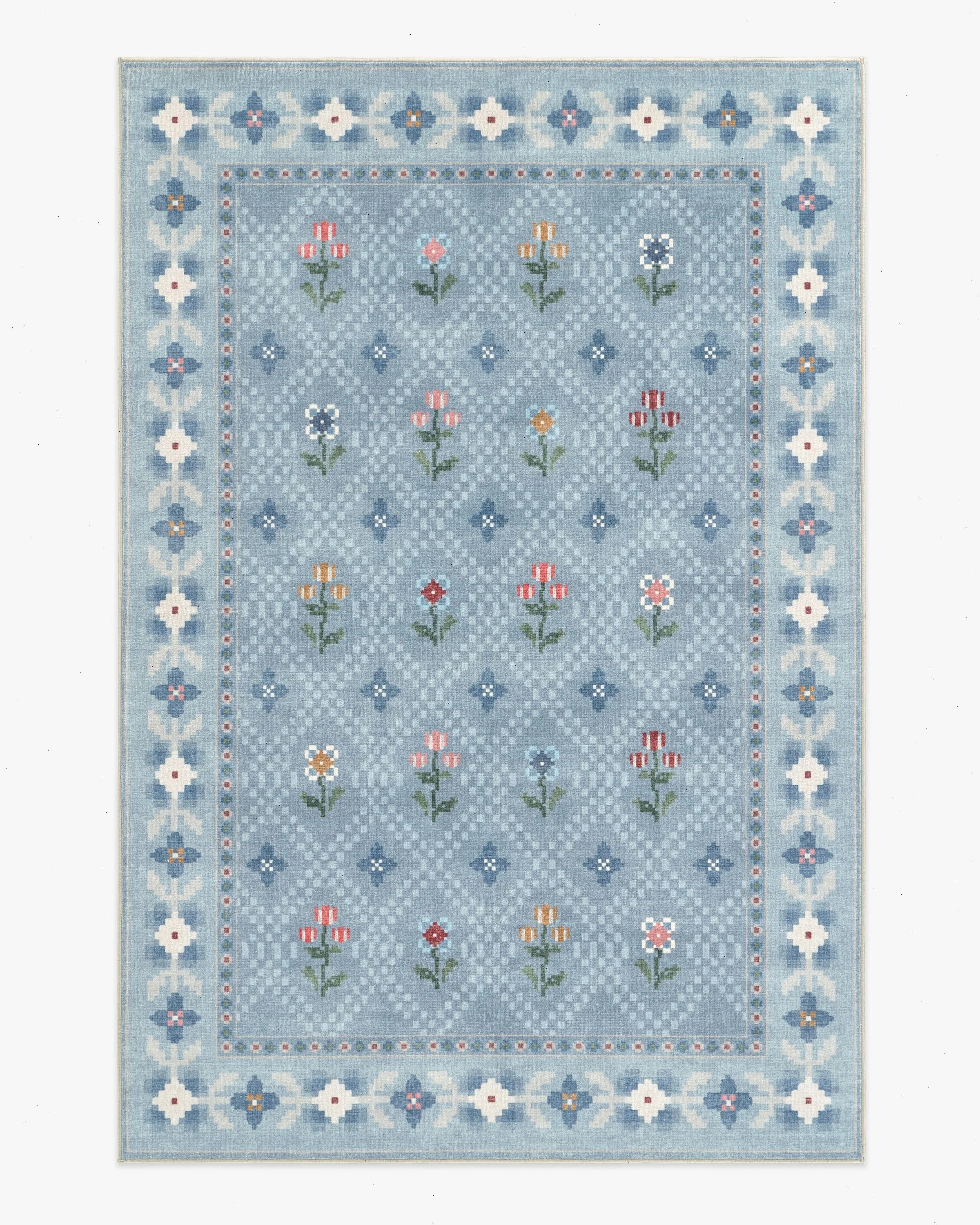 A sweet escape exists right at home. The charmingly eclectic Ella Slate Blue Rug by Anthropologie draws from chintzy folk florals and vintage textiles. A handcrafted feel shines through in the varied blooms and soft slate blue field, accented with hints of green, pink, yellow ochre, and wine red. Water-resistant, stain-resistant, and fully machine-washable. Colors may vary by device and lighting.