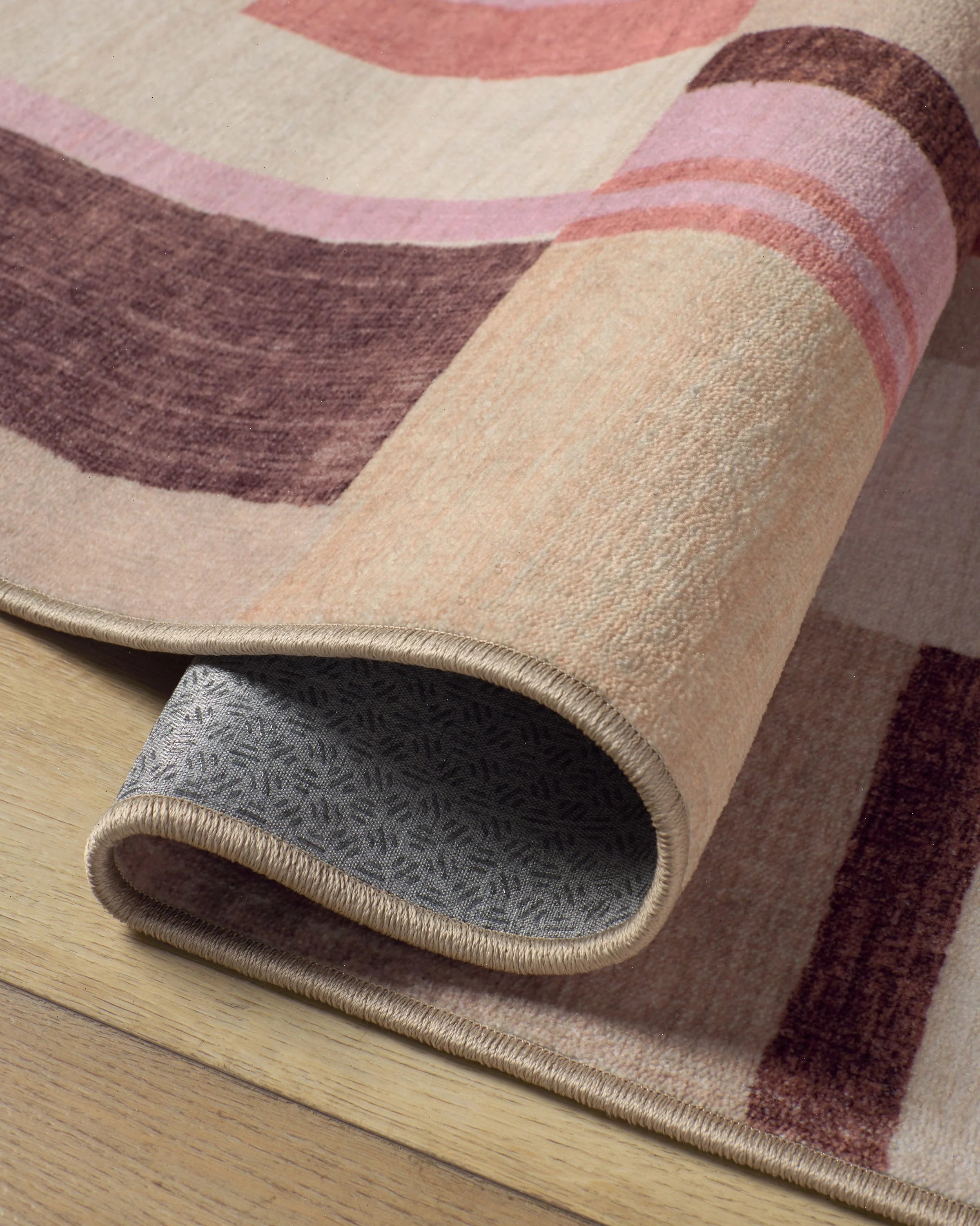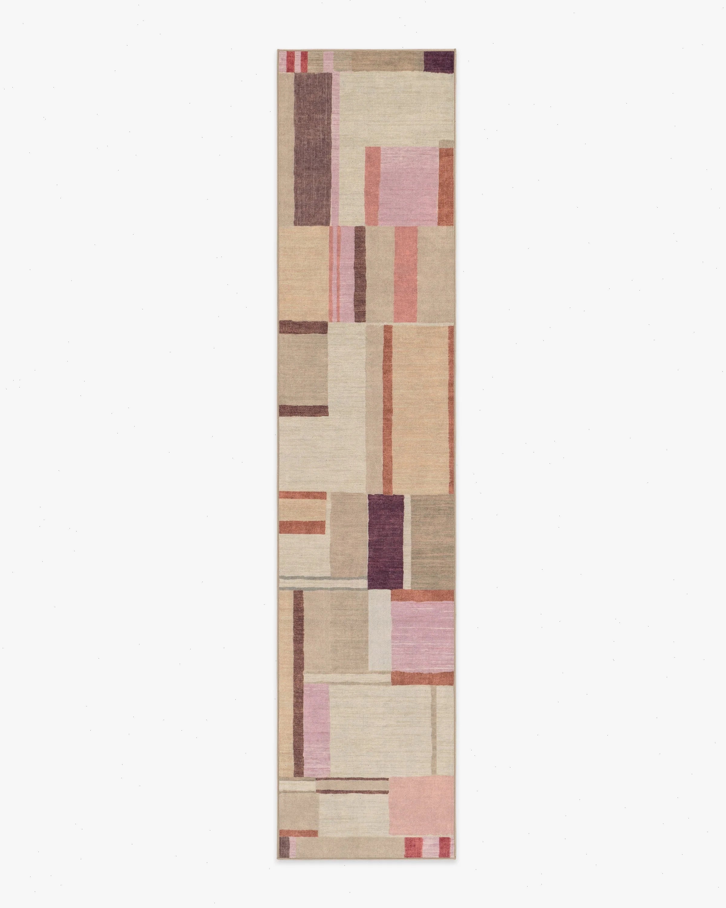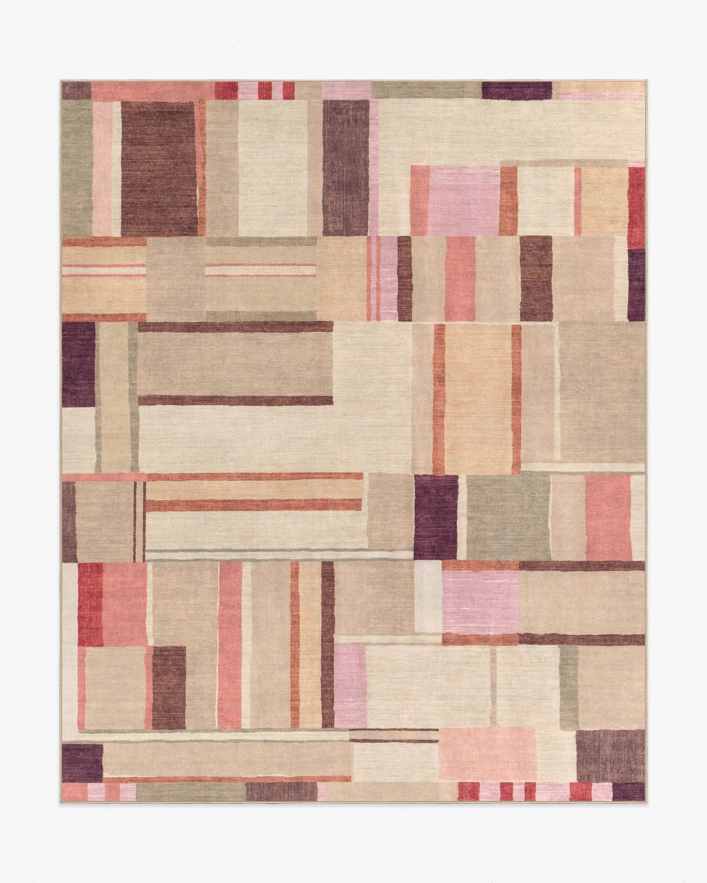 Expect the unexpected. The Winona Cream Multicolor Rug by Anthropologie blends rustic architecture and soft luxury with vertical and horizontal stripes set against a cream background. Warm and cool neutrals mingle with pops of pink, rusty orange, and warm red for a layered, inviting look. Water-resistant, stain-resistant, and fully machine-washable. Colors may vary by device and lighting.
