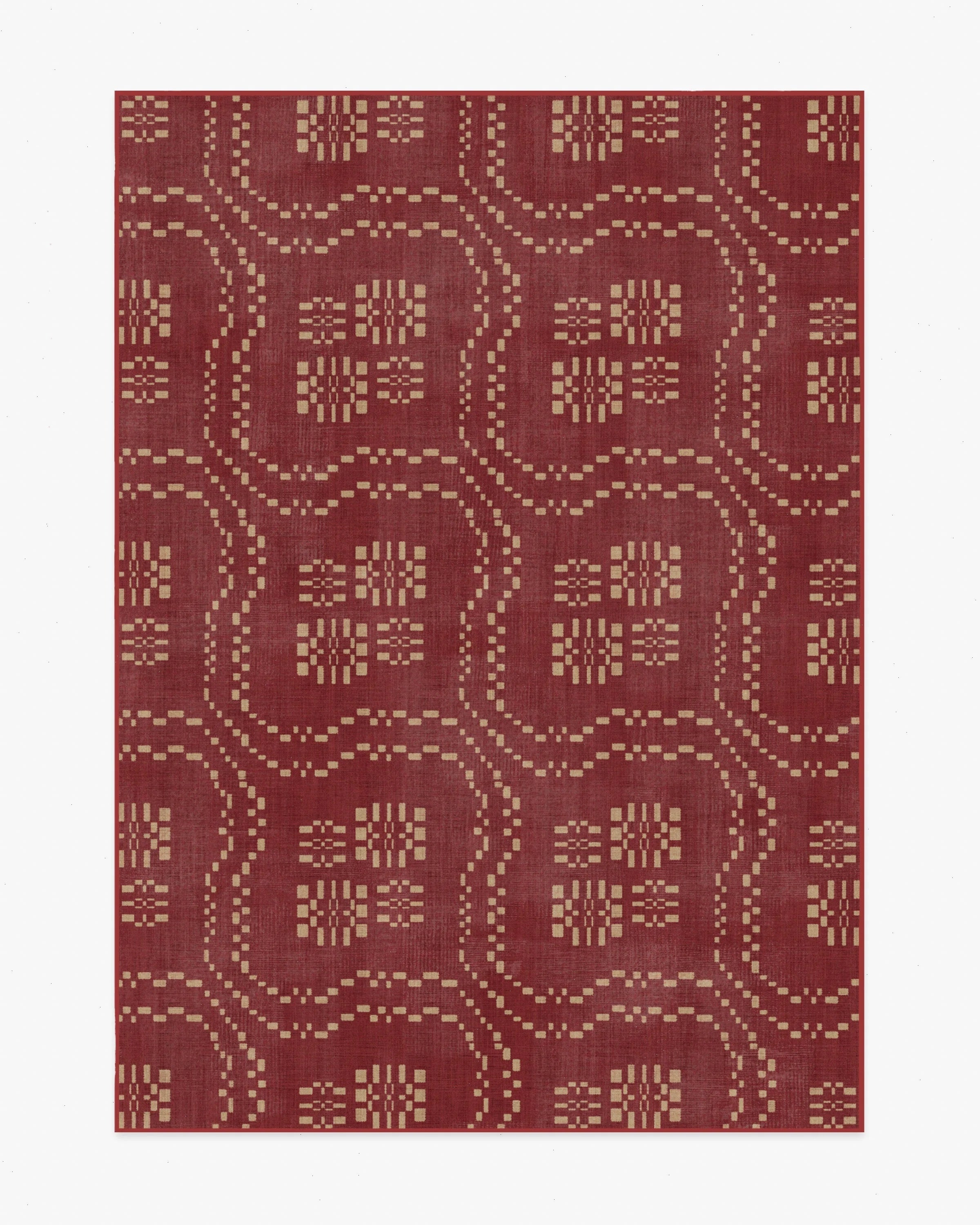 Rooted in tradition, the Arlen Amber Red Rug draws from classic weaving patterns to create a grounded, graphic statement. A rich red backdrop sets the stage for warm golden tan motifs for a warm accent to your space. Water-resistant, stain-resistant, and fully machine-washable. Colors may vary by device and lighting.