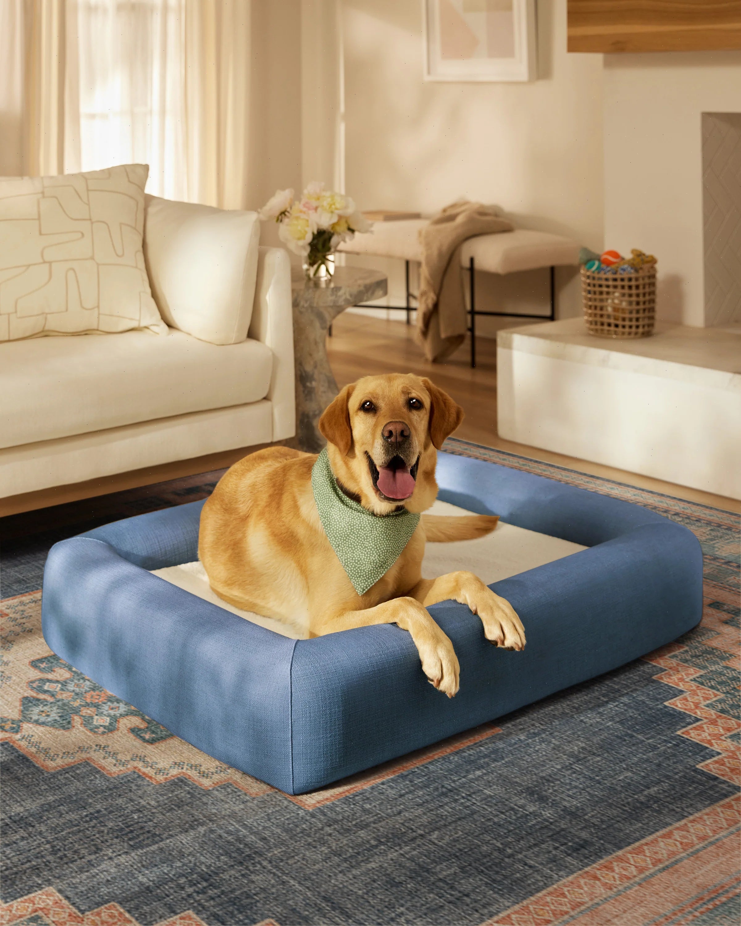 Meet the always clean, easy to style, Blue Woven Bolster Pet Bed. This versatile color exudes calming comfort and provides a soothing reprieve for the eye. Let your pet cozy up on the sherpa mattress for a sound sleep. Machine-washable outer covers with water-resistant, stain-resistant mattress and bolster cushions. Pet bed colors may vary slightly according to your device and the lighting in your space.