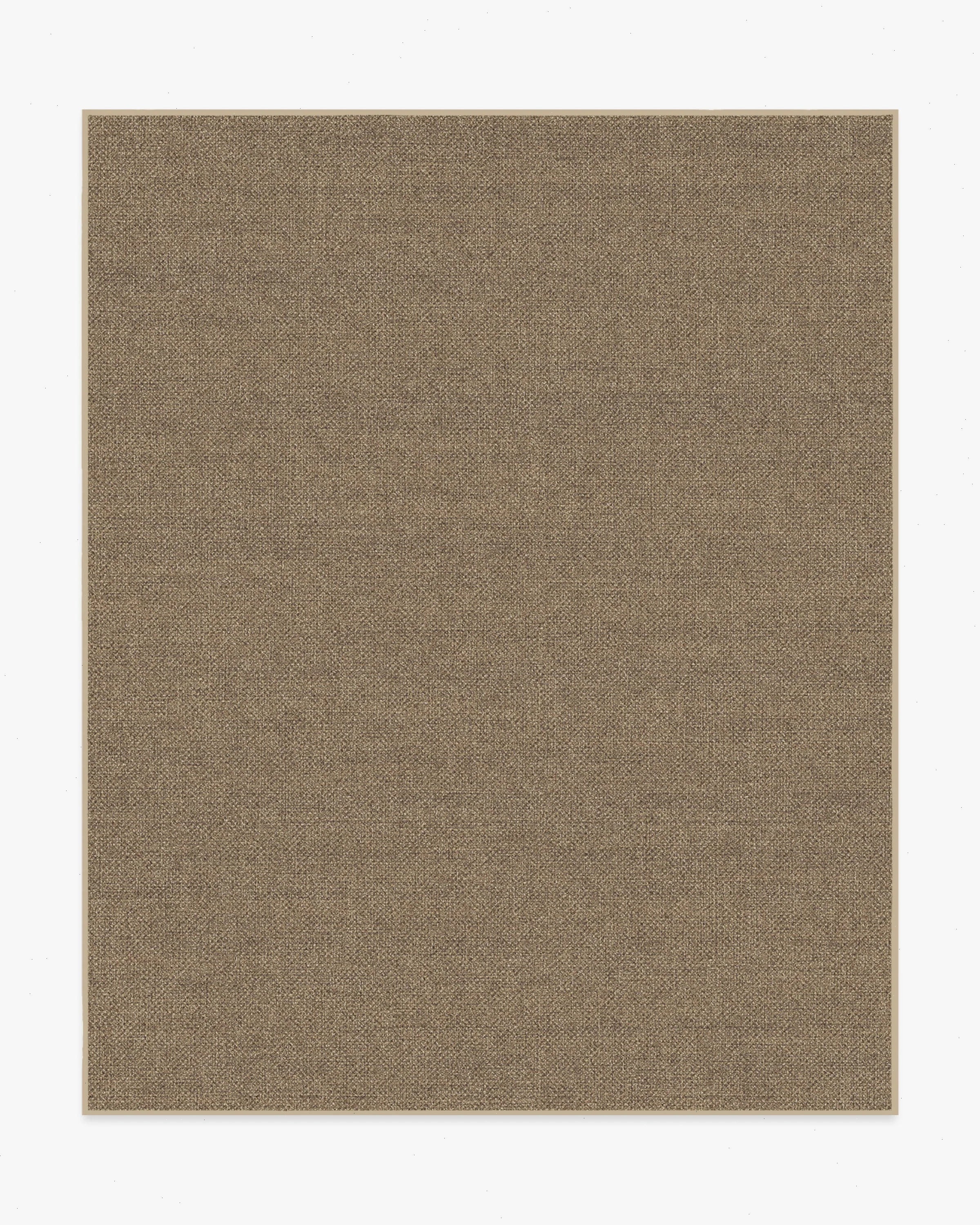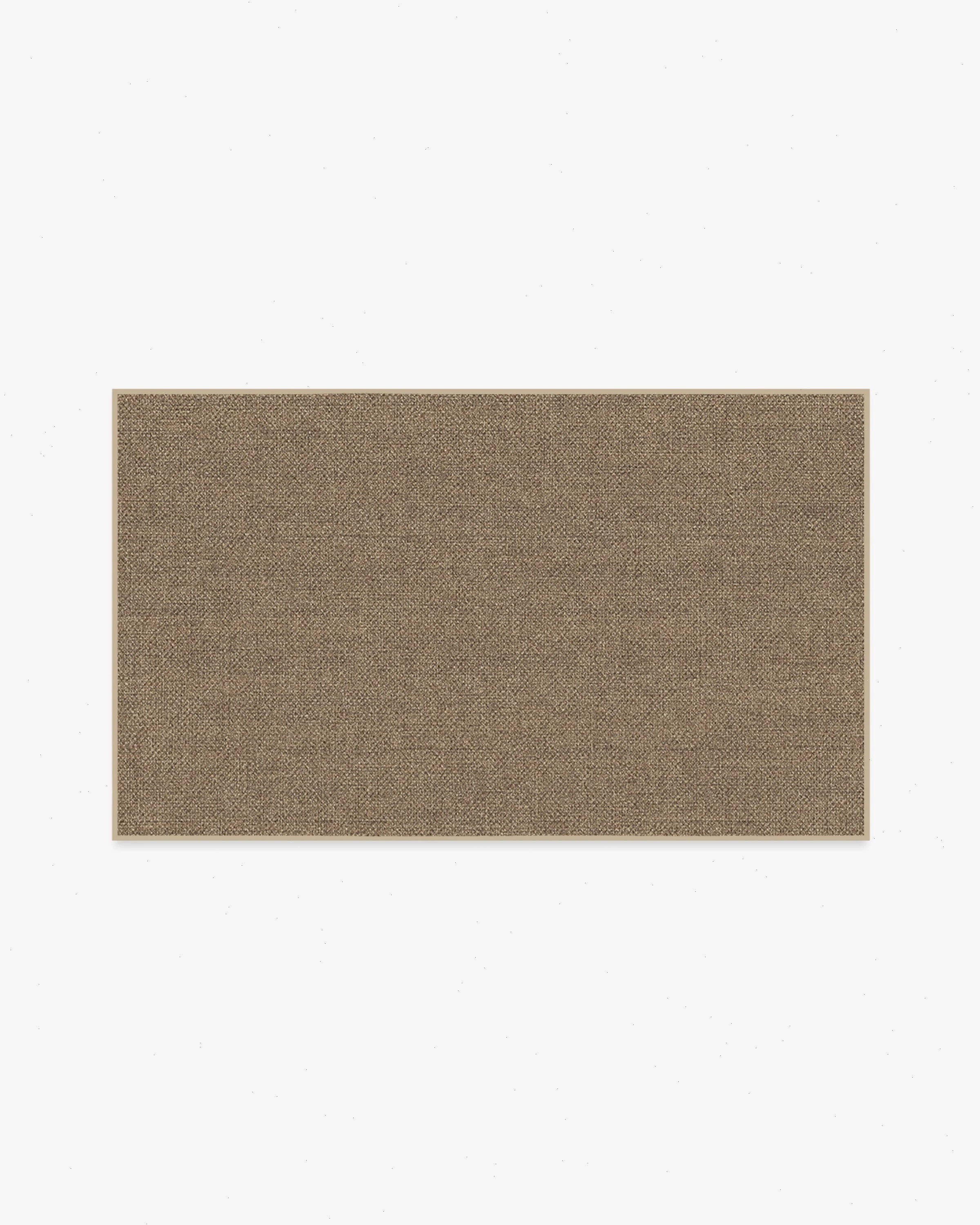 A warm and earthy tone with natural jute texture. This rug blends shades of light and natural tan to create a heavy linen, burlap look. Its natural color and washable jute-like material make it perfect for any space. Made with recycled + virgin polyester, and polyurethane.