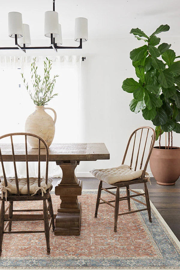 Rule of thumb: Select a rug 4 feet longer and wider than your table so chairs stay on the rug when pulled out.