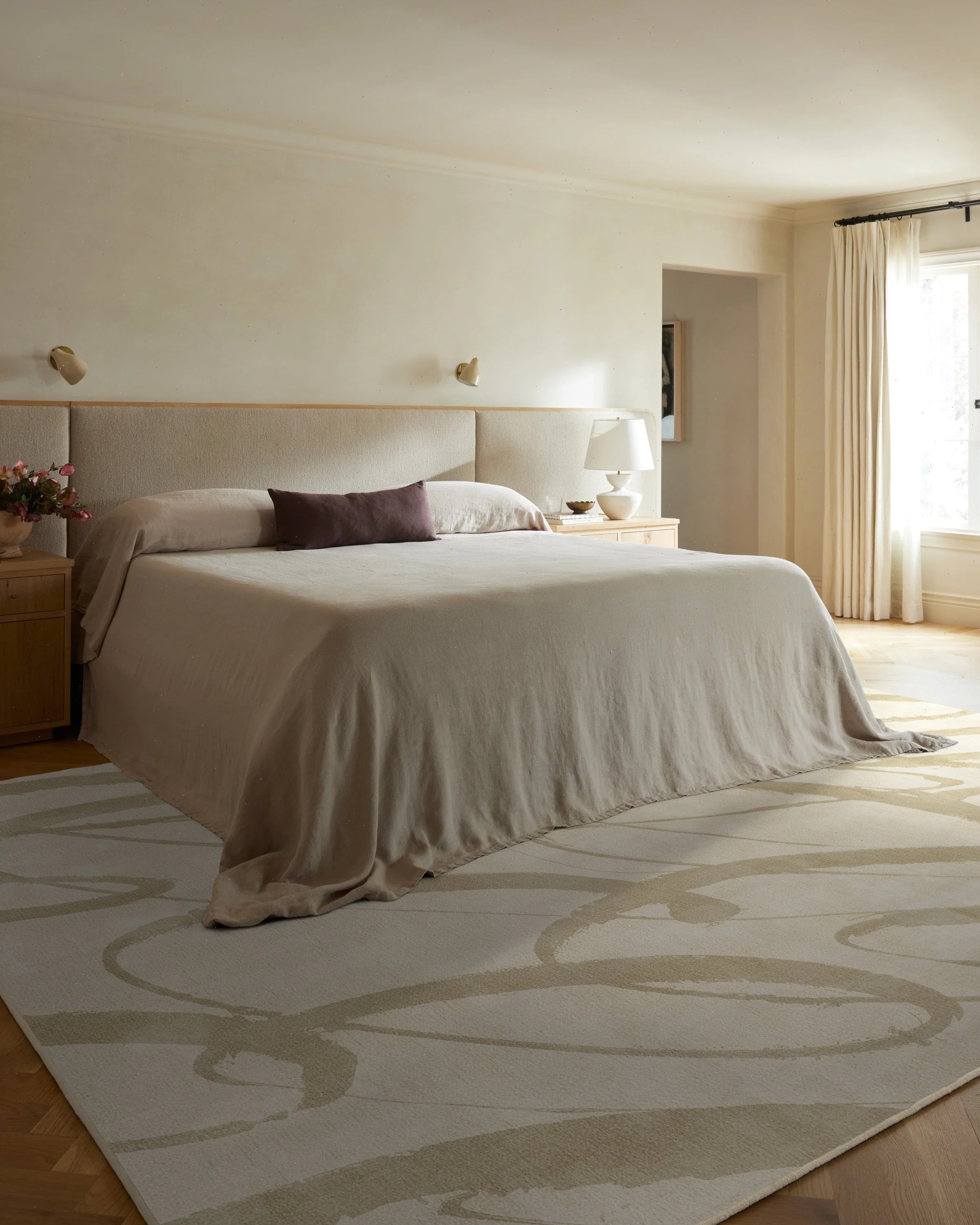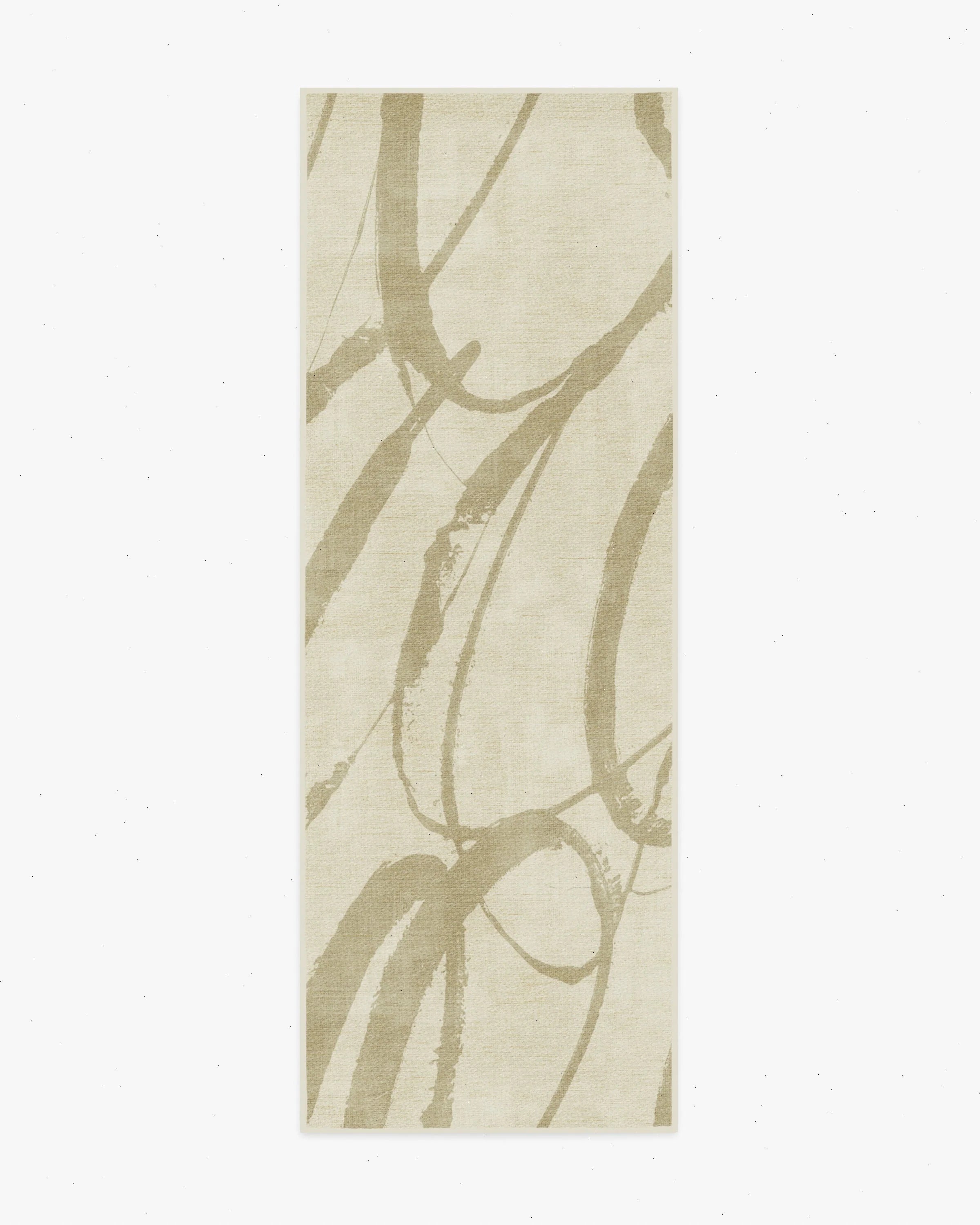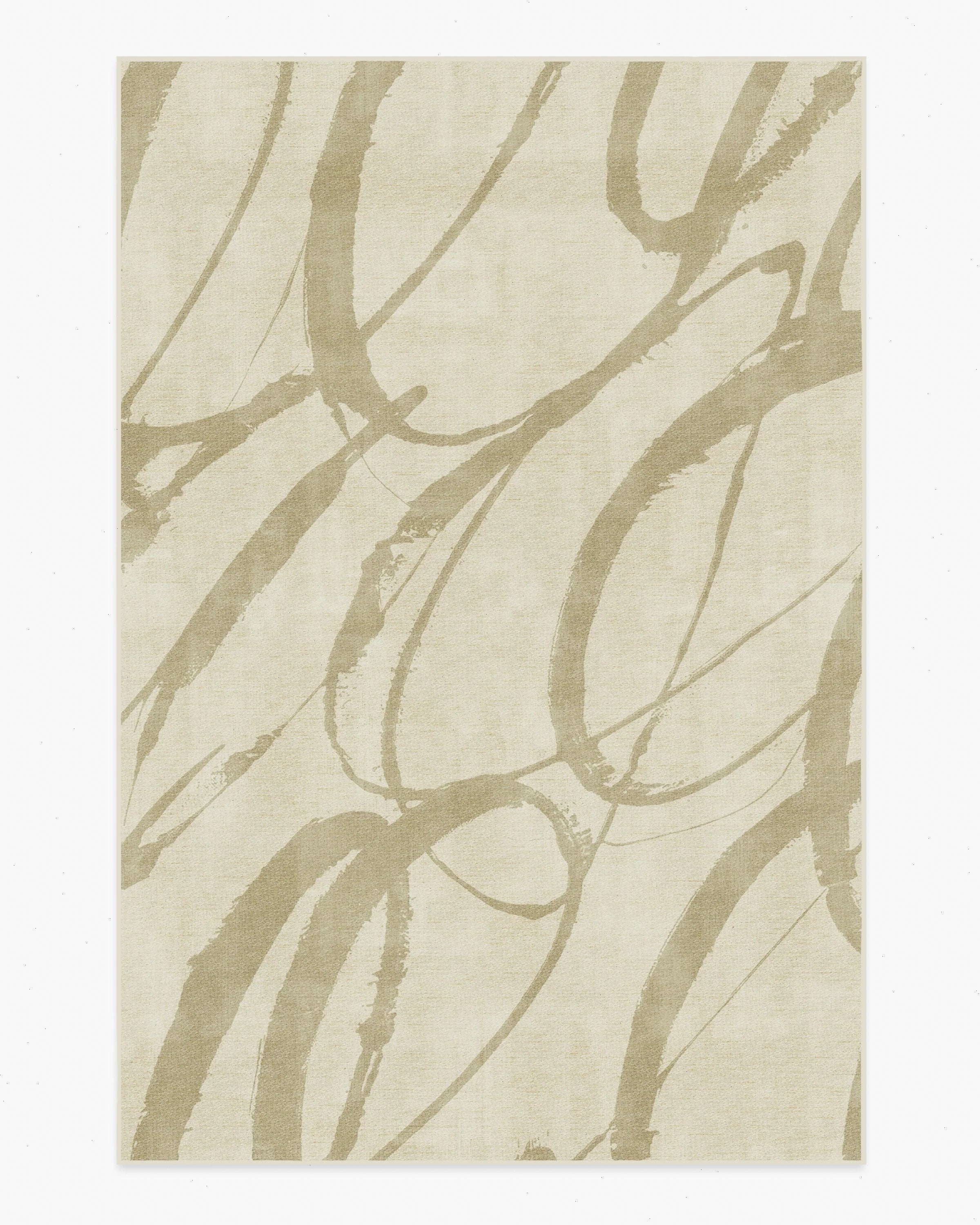 Channel your most expressive self. The Chiro Soft Gold Rug lays down the movement of Abstract Expressionism–inspired brushwork with broad, gestural strokes that sweep rhythmically across the surface. Irregular line weights and subtle distressing bring effortless movement and lived-in texture. A neutral golden stroke with a slight melange overlay settles over a soft creamy taupe ground for a warm, refined balance. Water-resistant, stain-resistant, and fully machine-washable. Colors may vary by device and lighting.