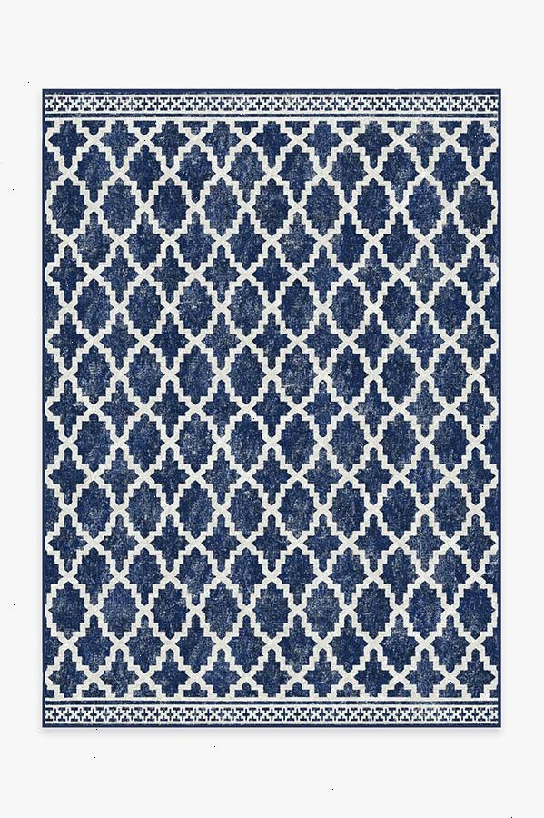 An elegant, statement-making design. Our Cleo Trellis Royal Blue Rug features a repeating pattern inspired by the Moroccan trellis motif with bordered ends in a blue and white color palette. The extra-durable, machine-washable material is perfect for both outdoor and indoor use, especially high-traffic areas and those exposed to the elements.