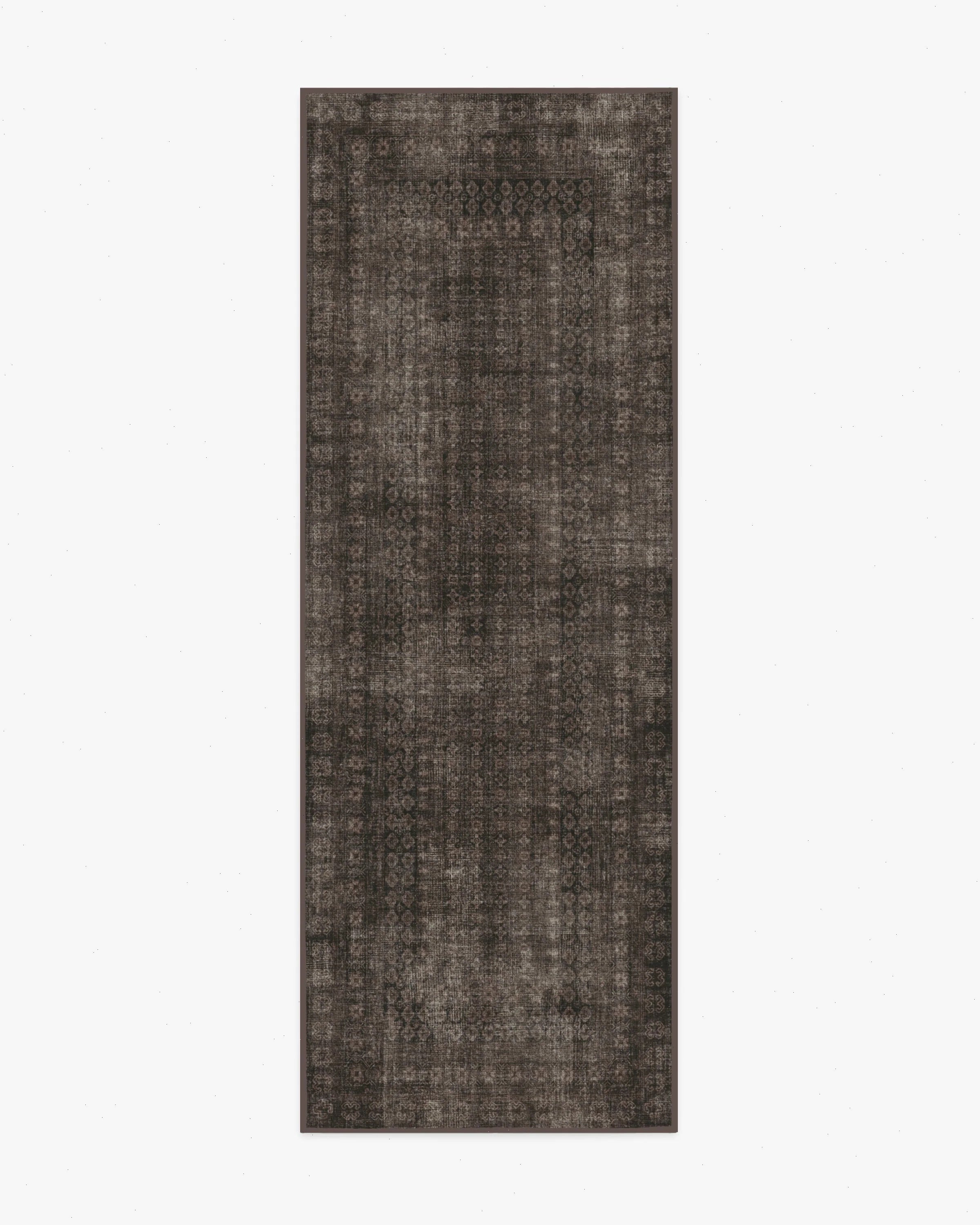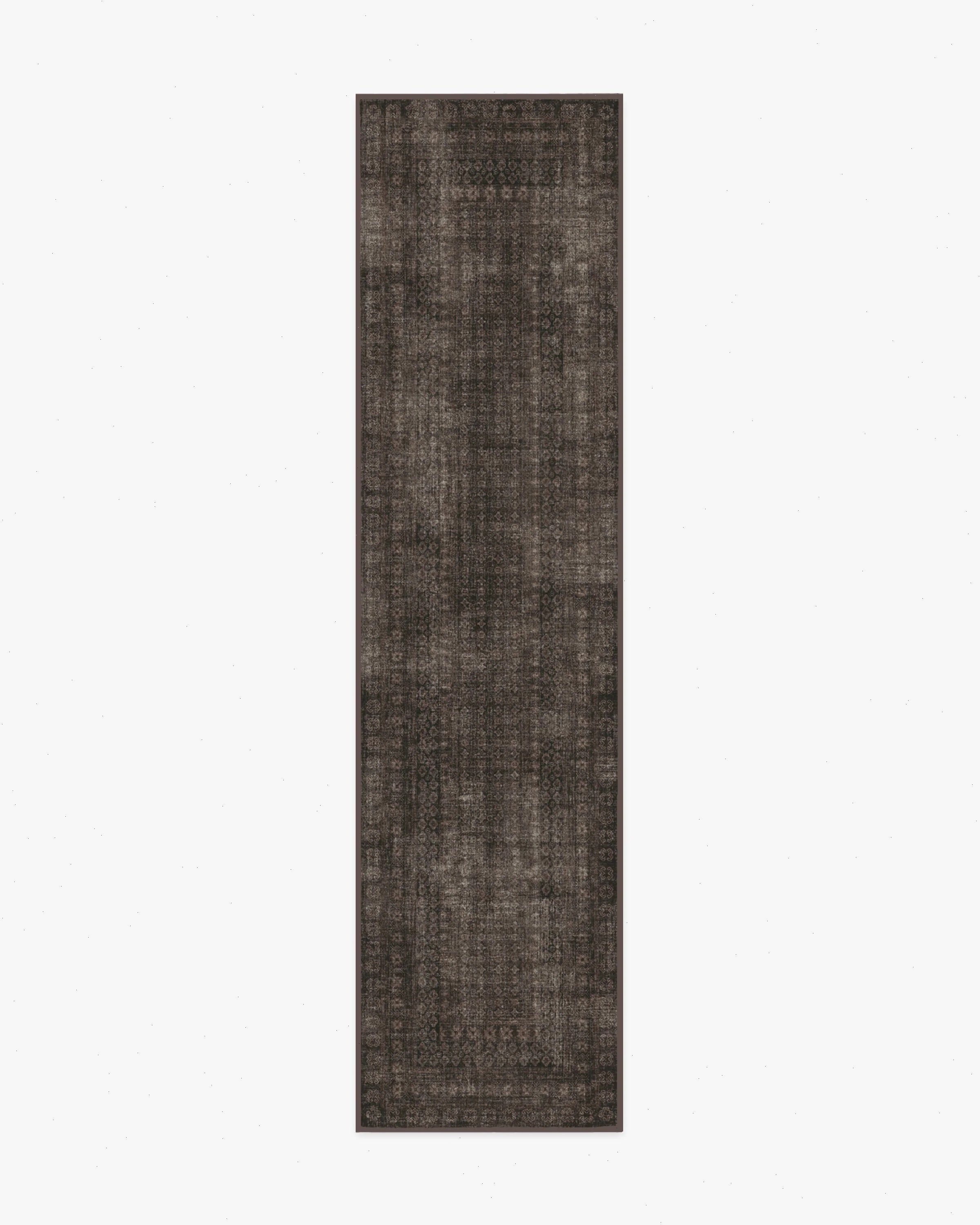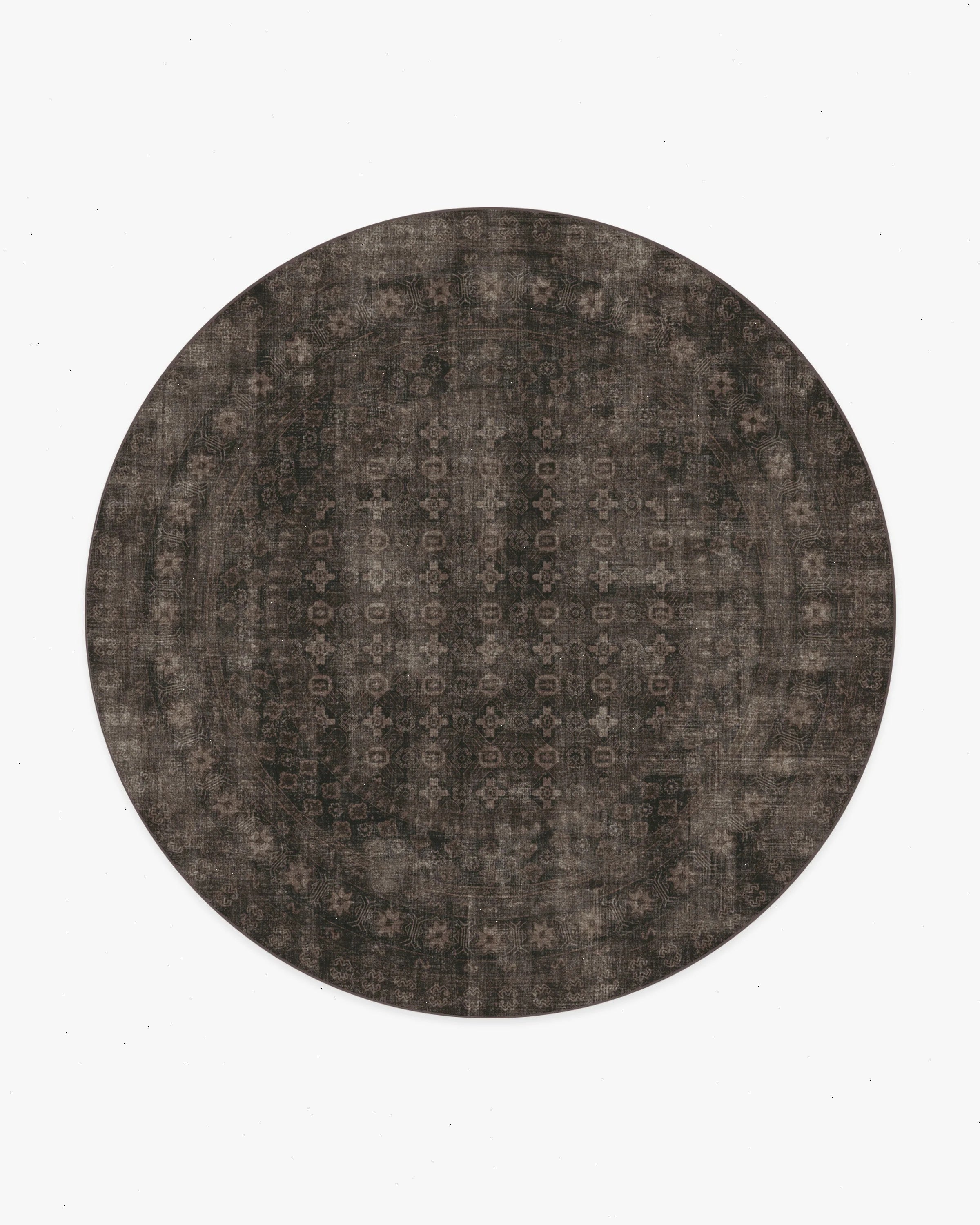 From our Founder's home to yours. Inspired by European café napkins, our Cyrus Black Rug imparts a distressed feel that unlocks world culture and artisanal craftsmanship. Its soft black, cool taupe, and burgundy palette grounds any space with vintage-style texture. The design expands out from the center in layered bands of ornate motifs, reminiscent of intricate tile work. Water-resistant, stain-resistant, and machine-washable. Rug colors may vary slightly according to your device and the lighting in your space.