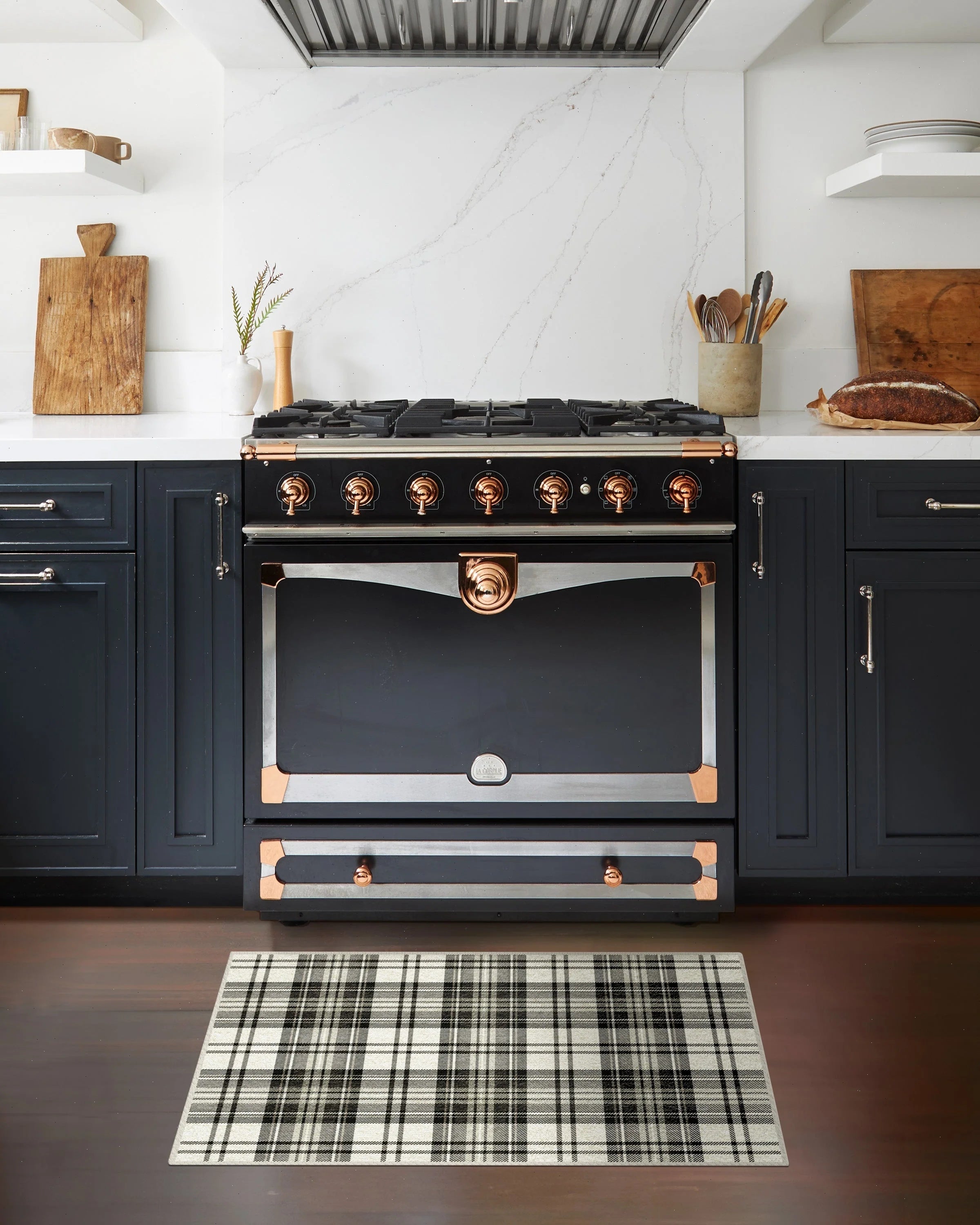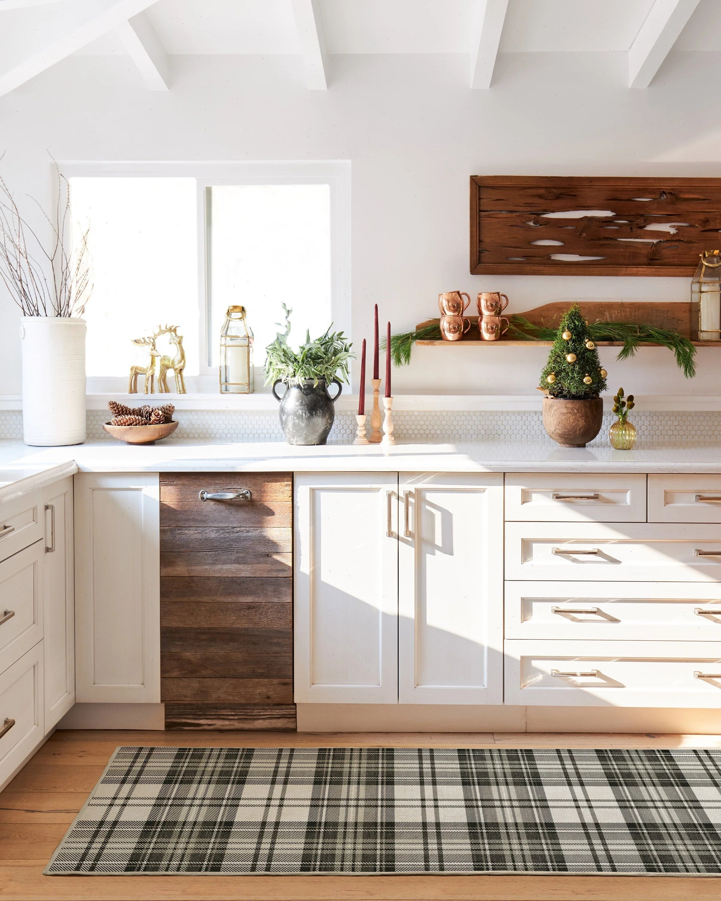 Practicality rules the kitchen. A runner near the sink adds comfort and peace of mind for spills.