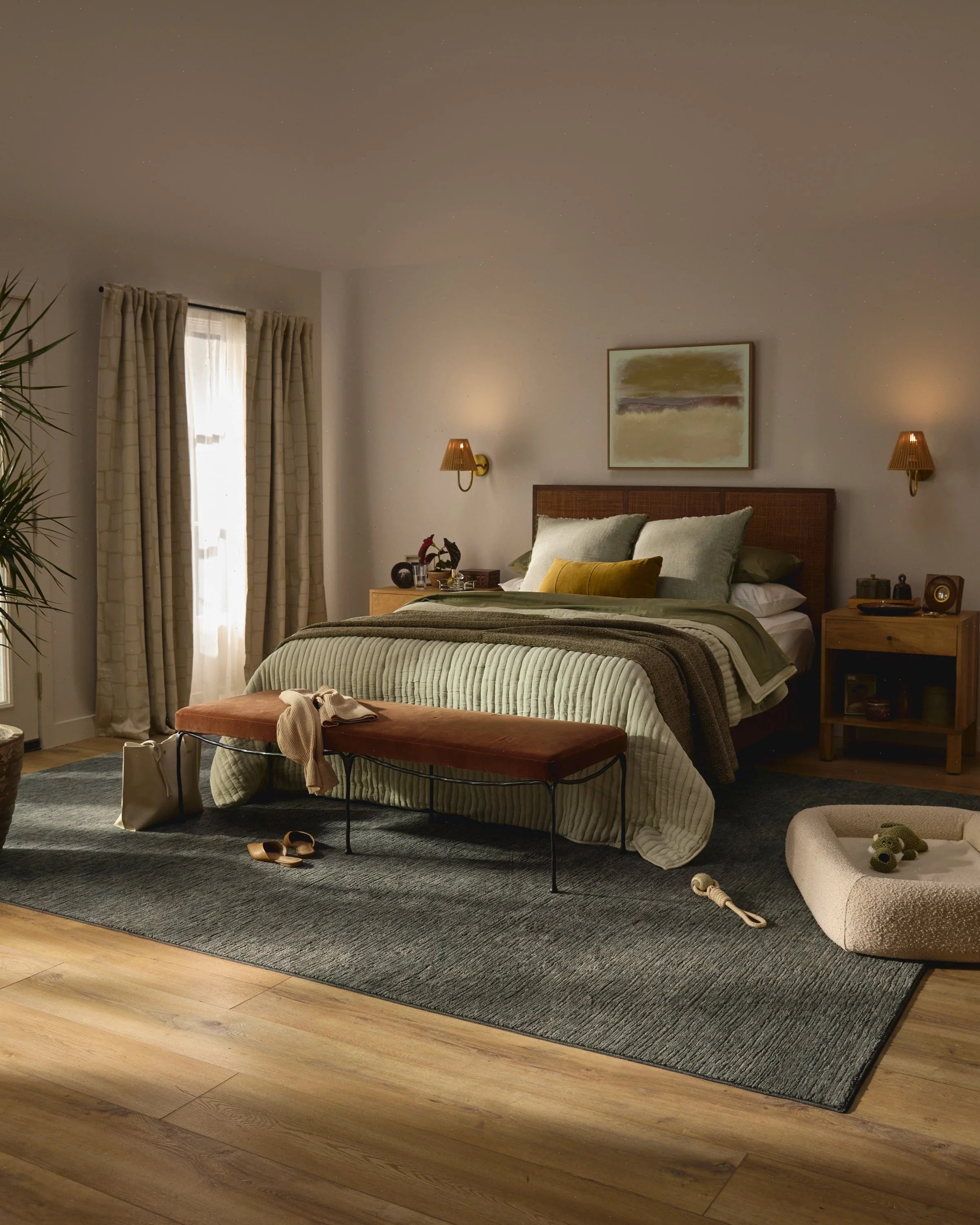 Meet the Finley Smoke Grey Plush Rug: cloud-soft comfort with an all-over linear texture. Space-dyed yarns in a moody mix of charcoal tones create a textured, heathered finish. Perfect for sleek spaces, cozy nooks, or grounding your go-to WFH setup. And if life gets messy (it will), no stress—it’s water-resistant, stain-resistant, and fully machine-washable. Colors may vary by device and lighting.