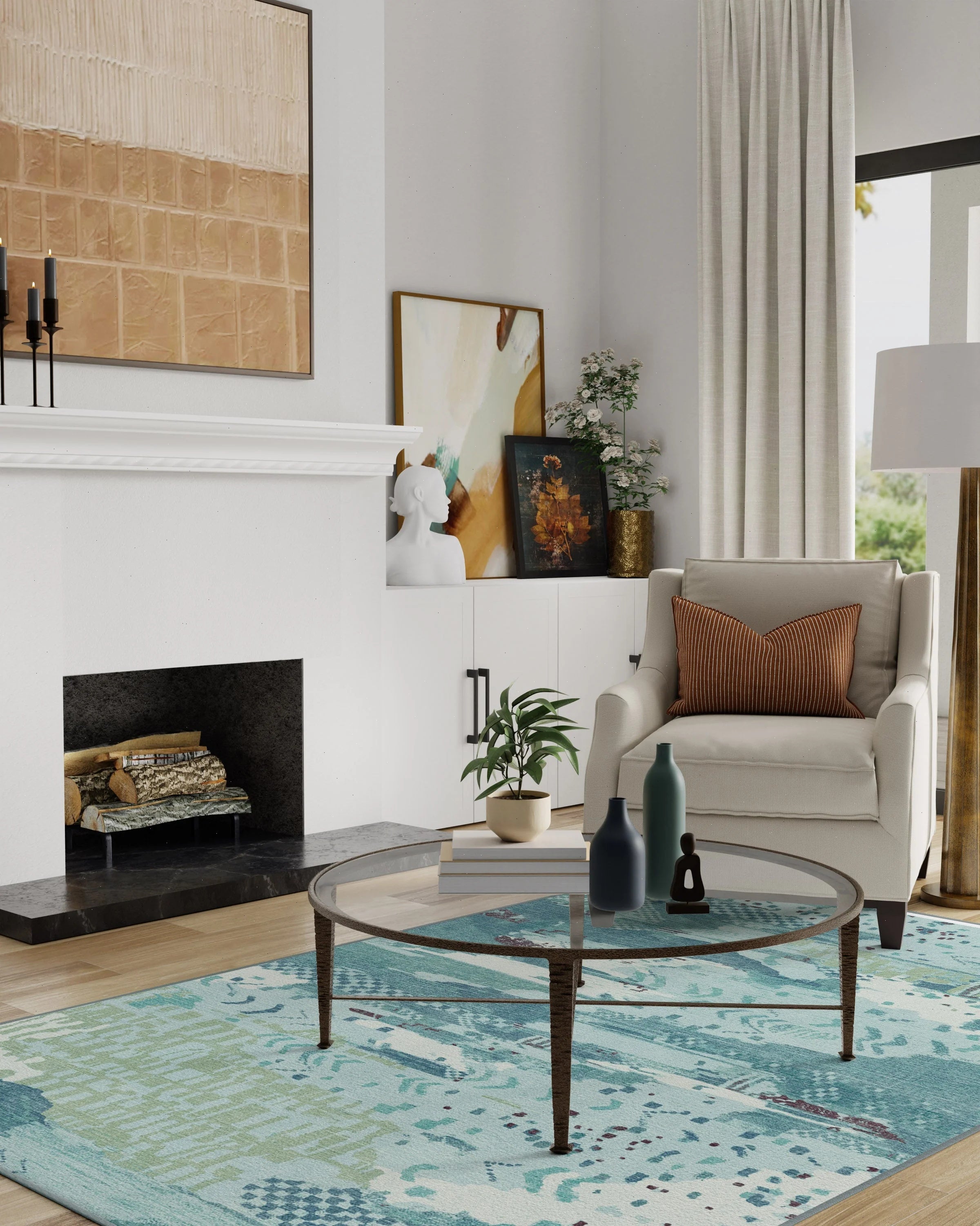 | Medium/Large | 5'x7', 6'x9', 8'x10', or 9'x12'. Choose size large enough to frame furniture. |
