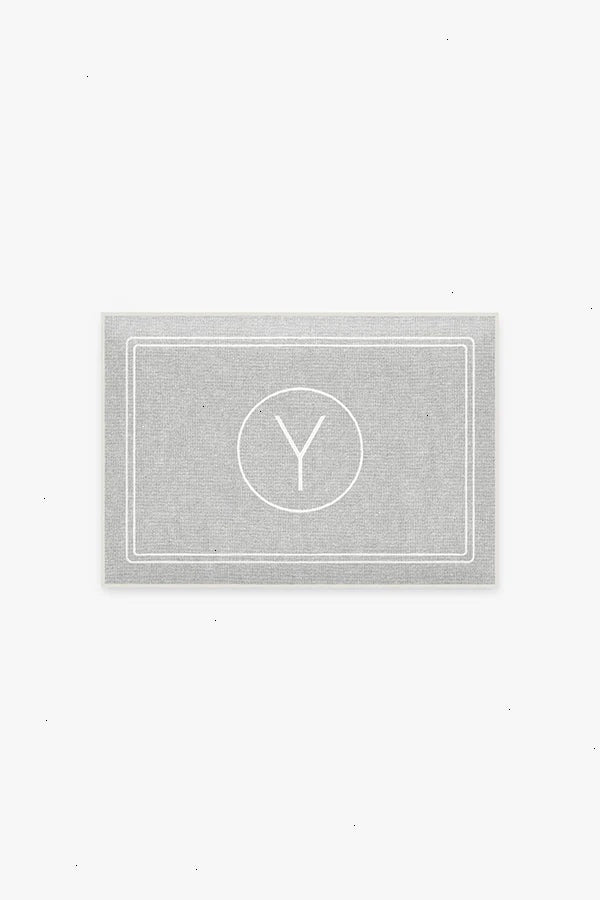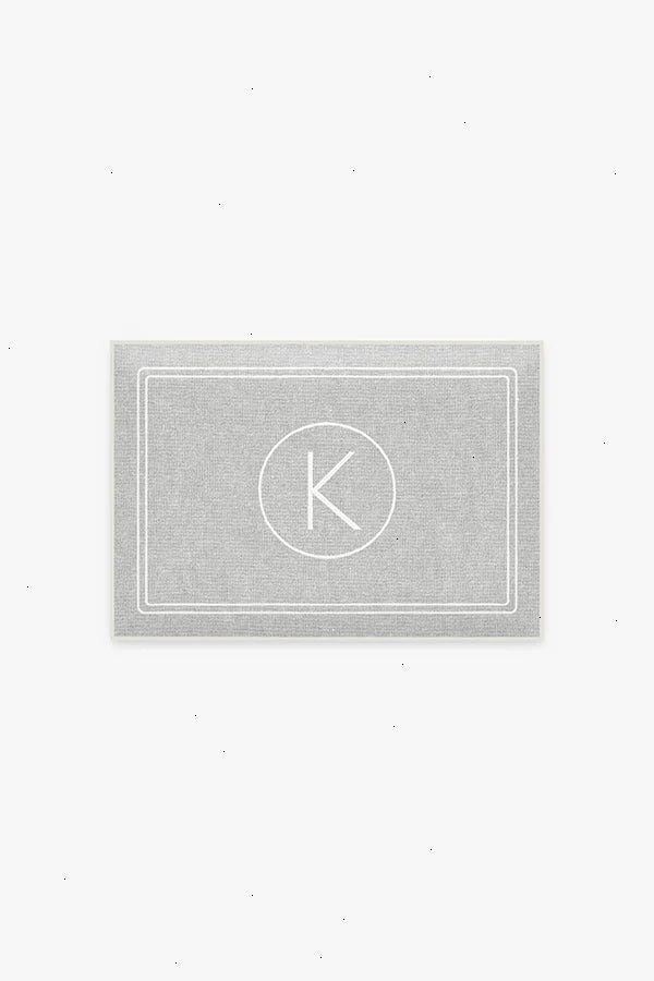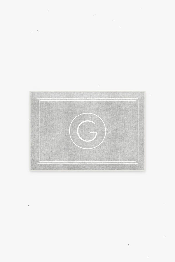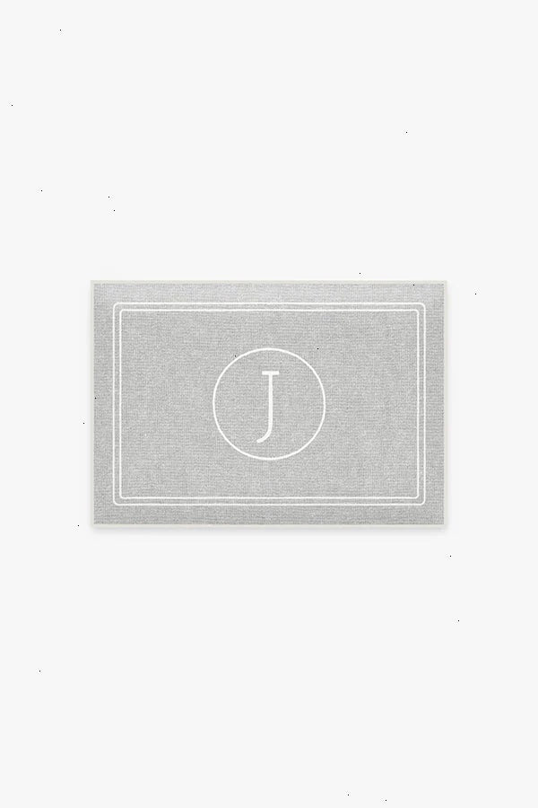 Instantly elevate your bathroom's sophistication with our Halo Monogram Bath Mat. A refined take on a classic monogram, this design is minimalist yet luxe-looking. It features a grey background with a white border and circle in the middle bearing the letter of your choice in white. Made from our highly absorbent, quick-drying, machine-washable tufted material.