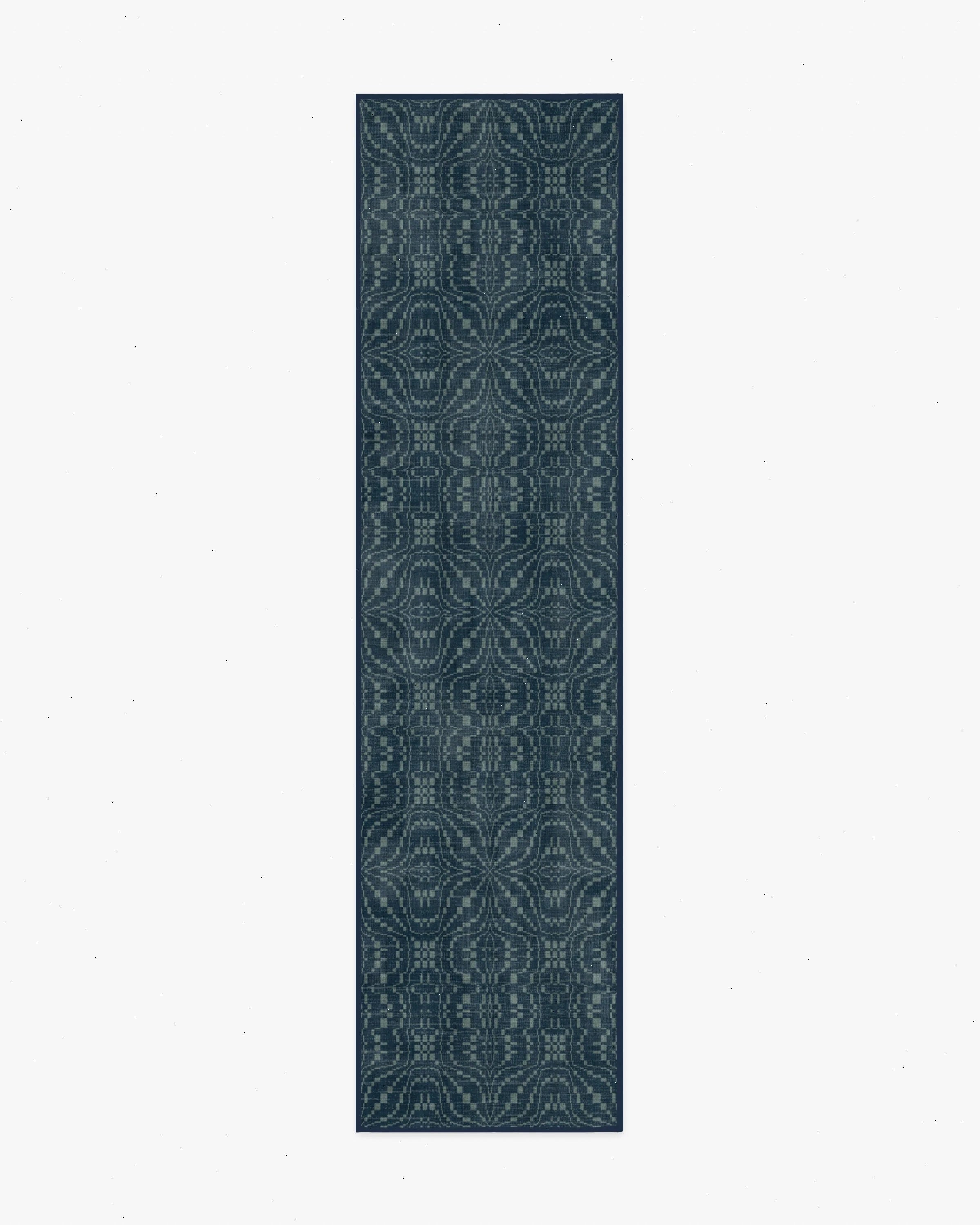 Home is where the hearth is. The Hearthstone Navy Blue Rug draws from traditional weaving patterns and heirloom textiles, with slate blue motifs set against a navy blue ground. This runner pairs well with the Arlen Slate Blue Rug. Water-resistant, stain-resistant, and machine-washable. Colors may vary by device and lighting.