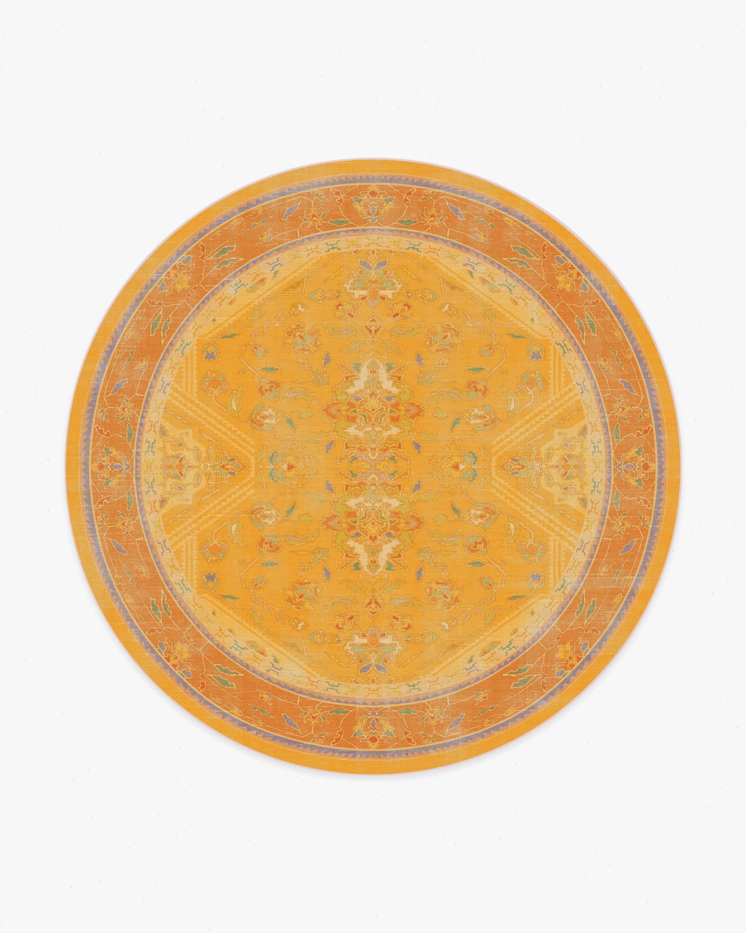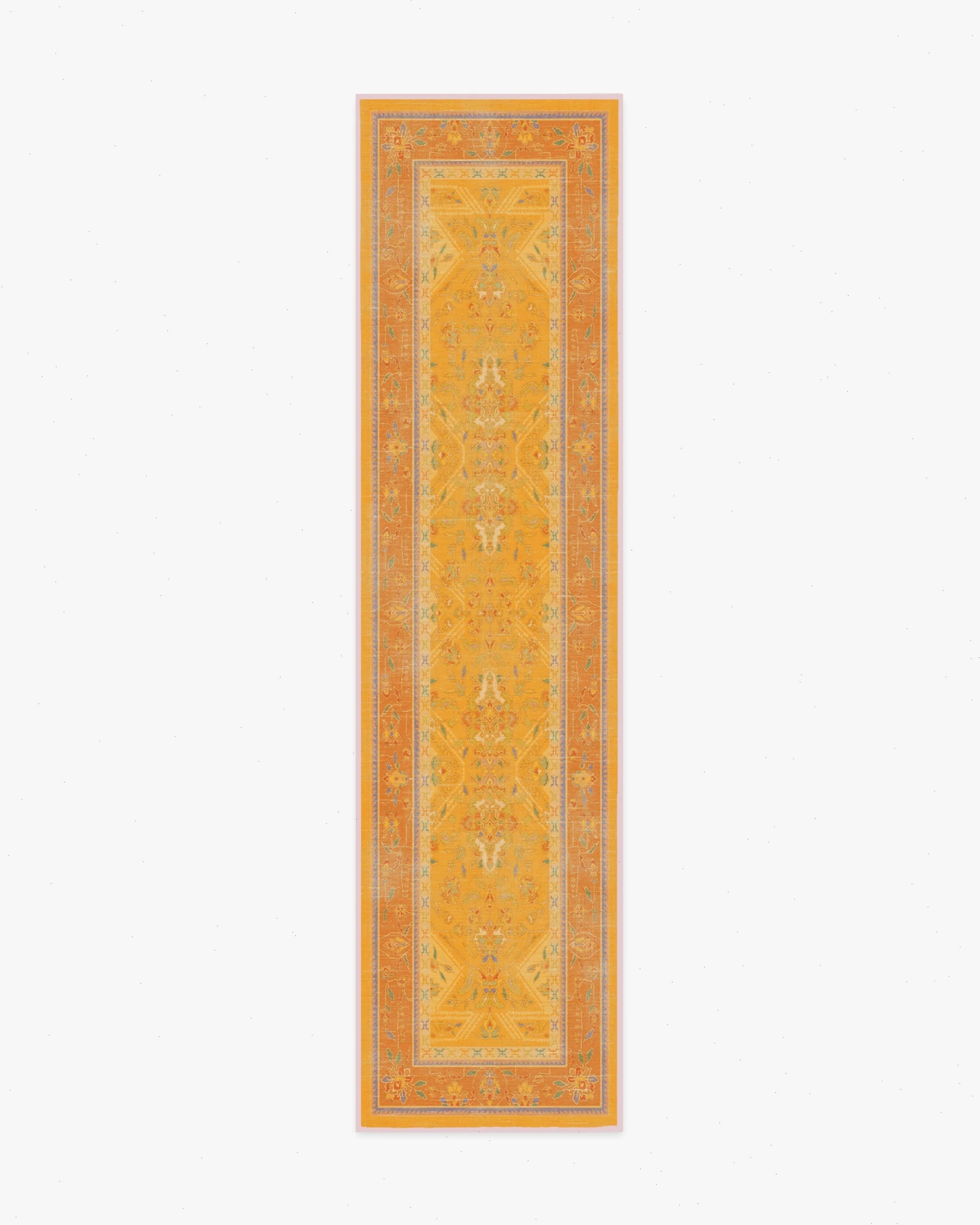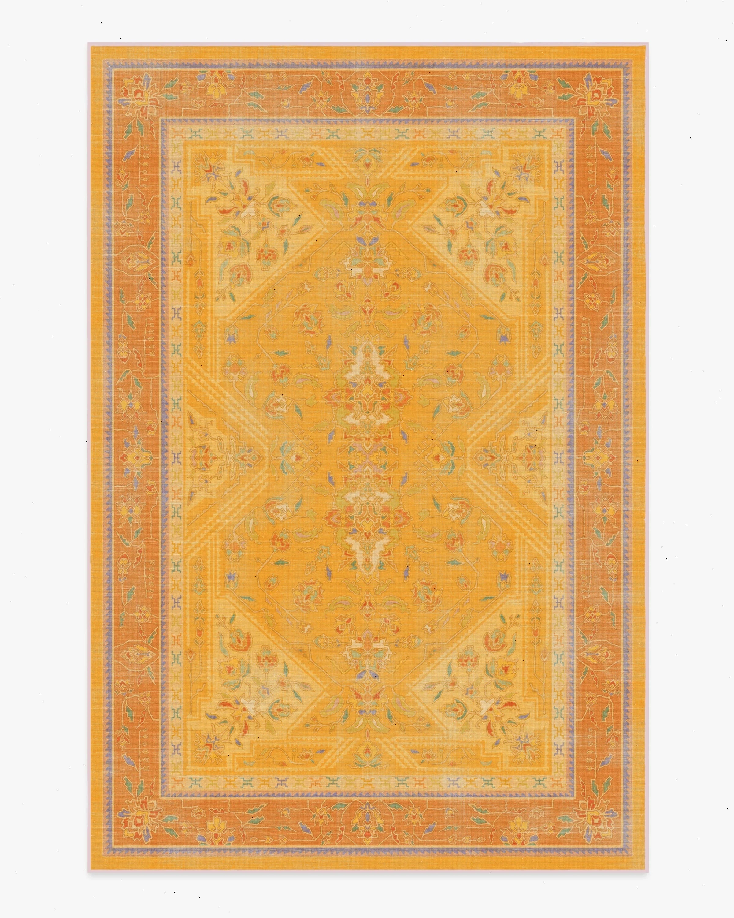 Unleash your creativity with our Iris Apfel Colorful Loom Mango Rug. Inspired by traditional Turkish loom rugs, this bright design reflects Iris' eclectic and luxurious approach to style. It features beautiful motifs drawn from her fashion along with geometric figures inspired by her personal jewelry collection. Its vibrant palette mixes pastel drops of orange, purple, lavender, green, teal, blue, and cream ��� all against a yellow background. Water-resistant, stain-resistant, and machine-washable. Rug colors may vary slightly according to your device and the lighting in your space.
