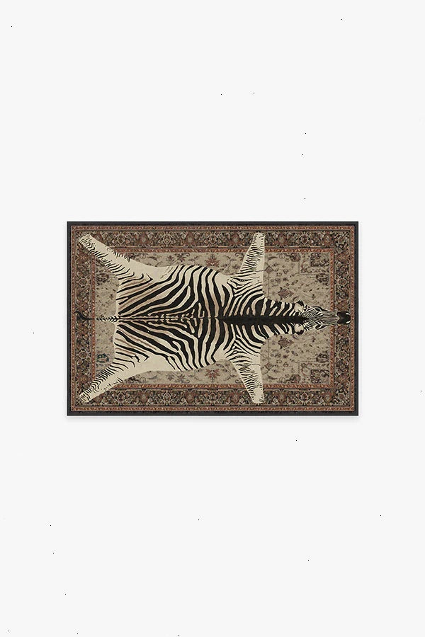 Dare to be different. Our Iris Apfel On Safari Hazel Rug features an intricate Persian-inspired design layered with large animal imagery for a sense of sophisticated eclecticism. The warm tonal tans of this piece call back to the zebra's homeland of the African grasslands and savanna woodlands. Water-resistant, stain-resistant, and machine-washable.