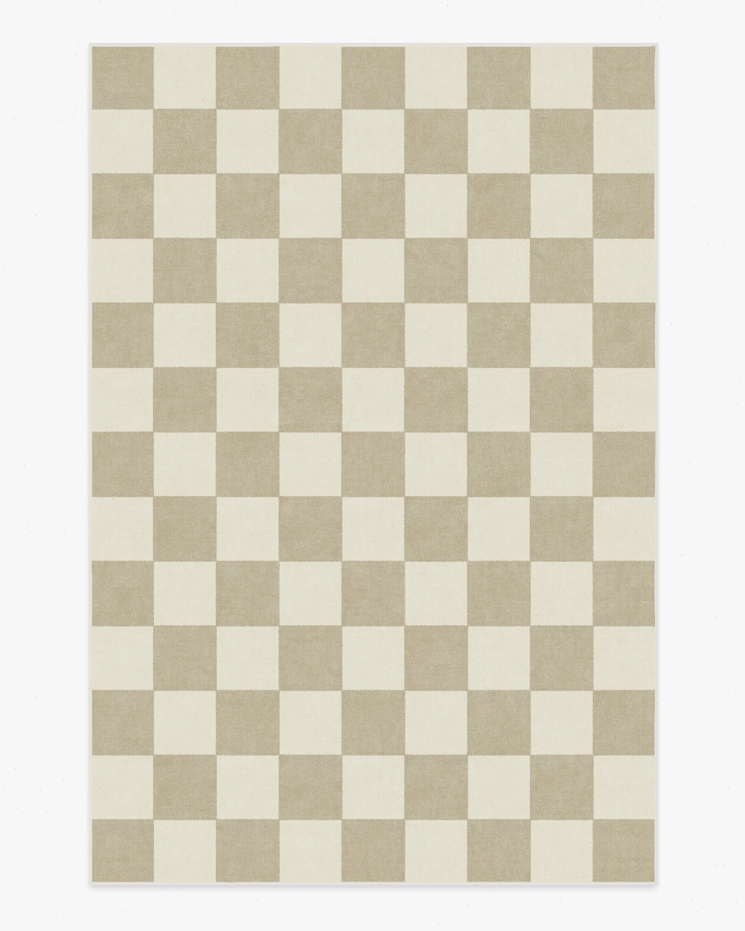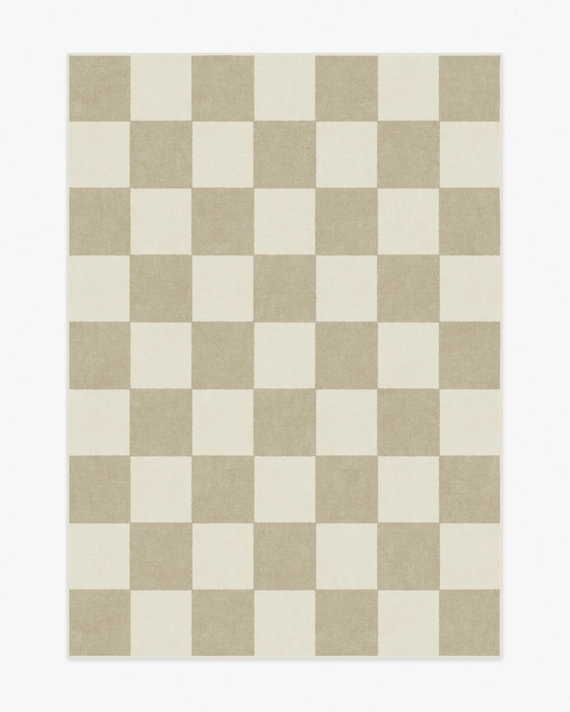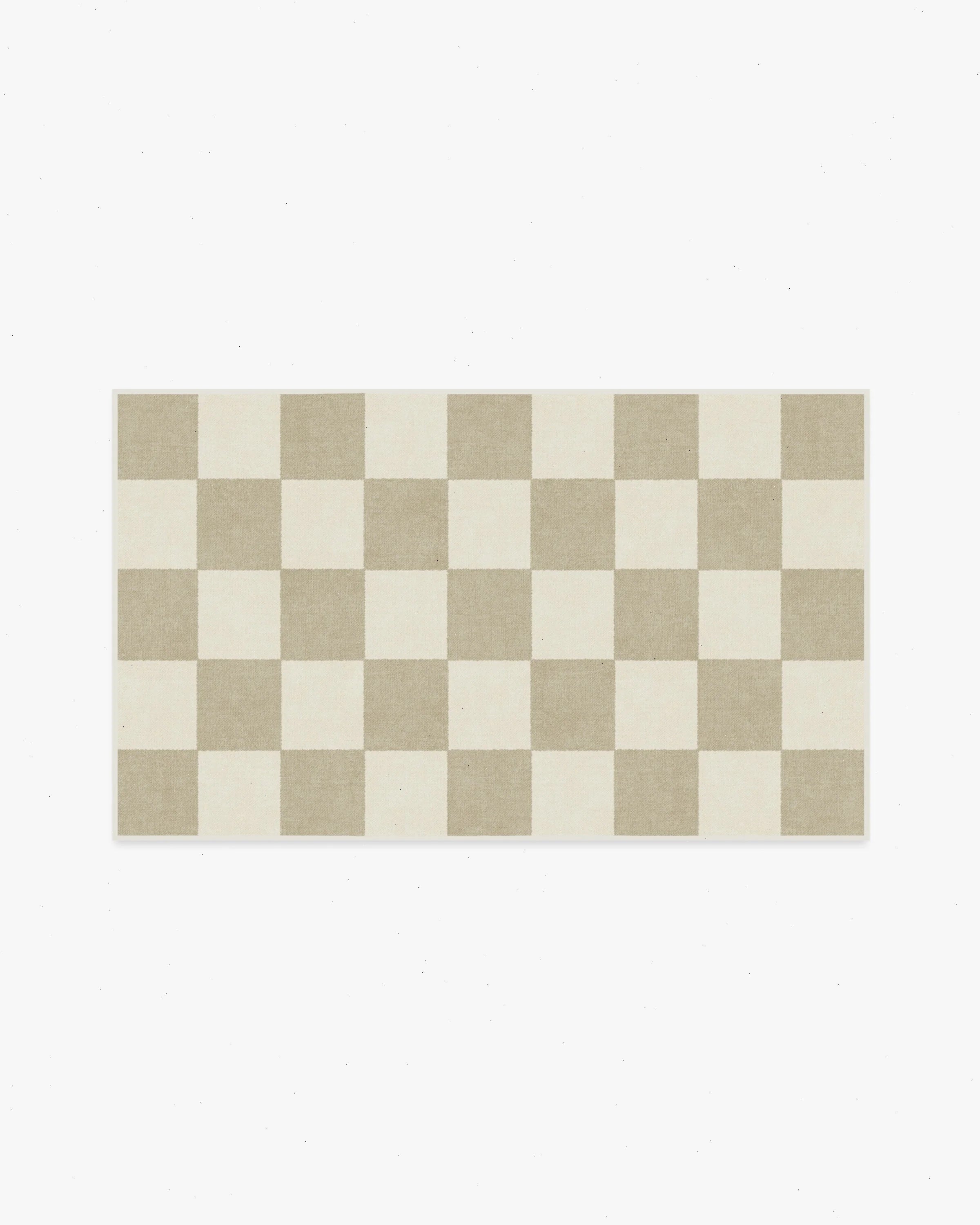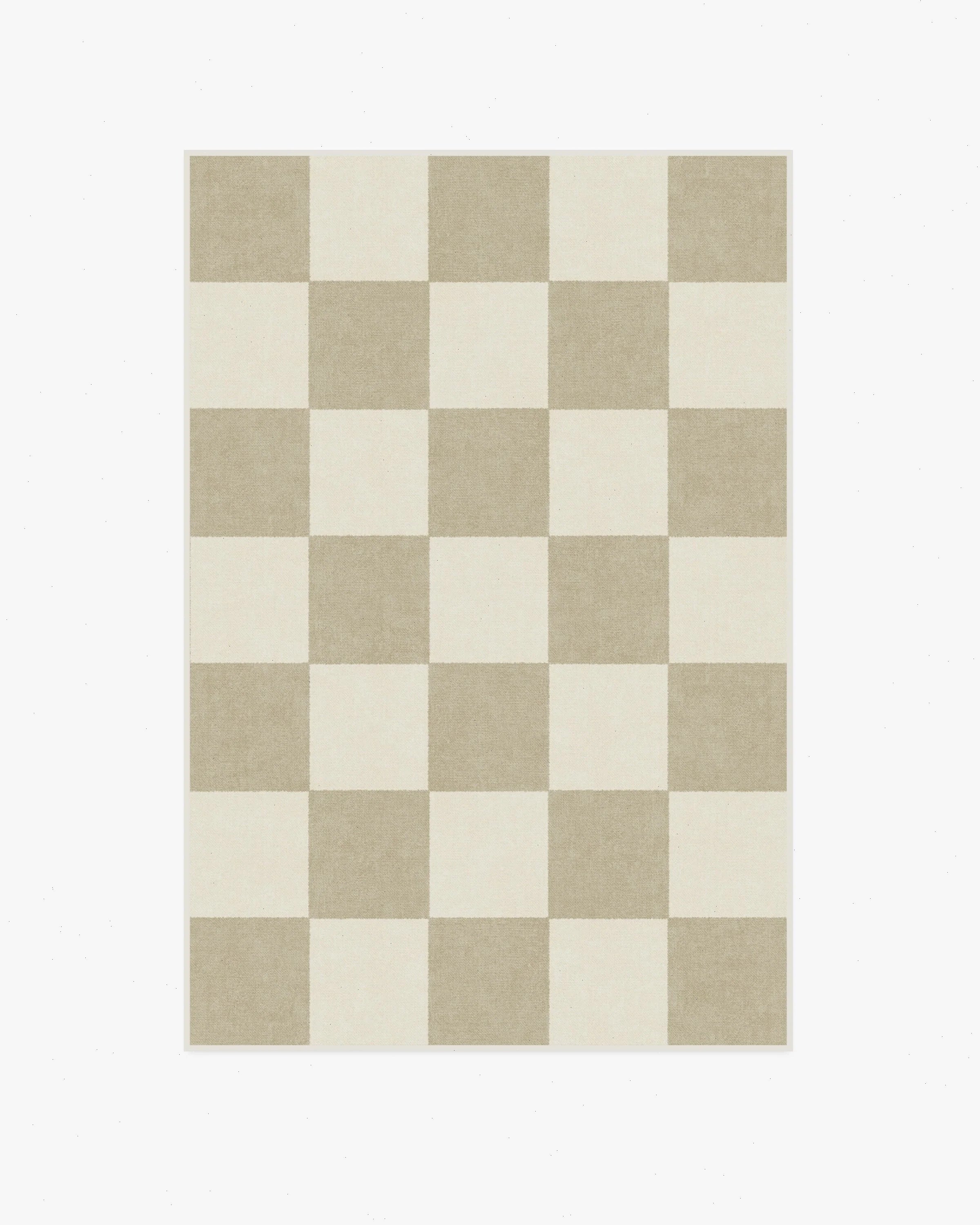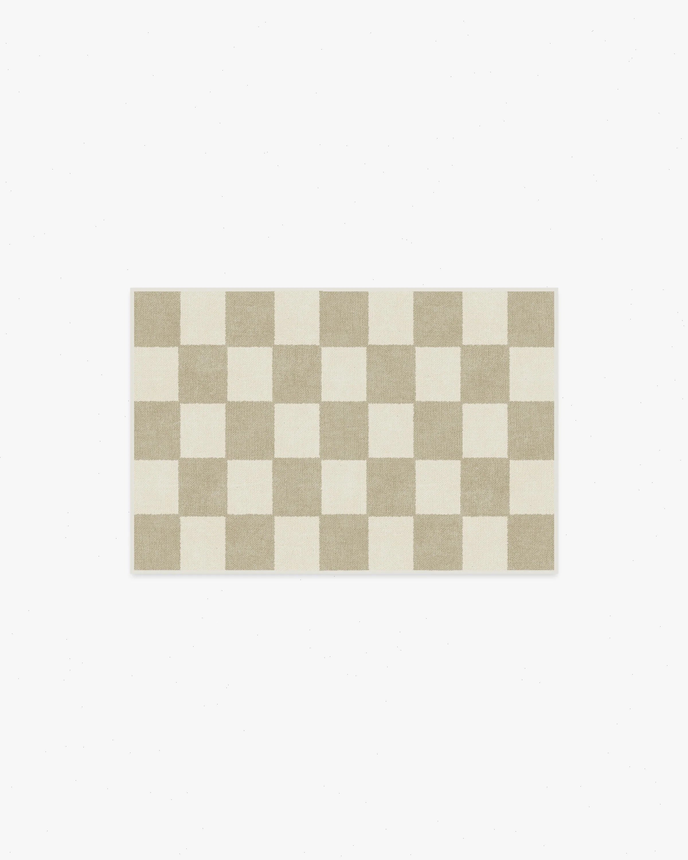 Let's play. Our Jaque Checkered Stone Rug brings washability to a classic checkerboard design, mixing warm, soft cappuccino squares against a soft pearl background. Water-resistant, stain-resistant, and machine-washable.