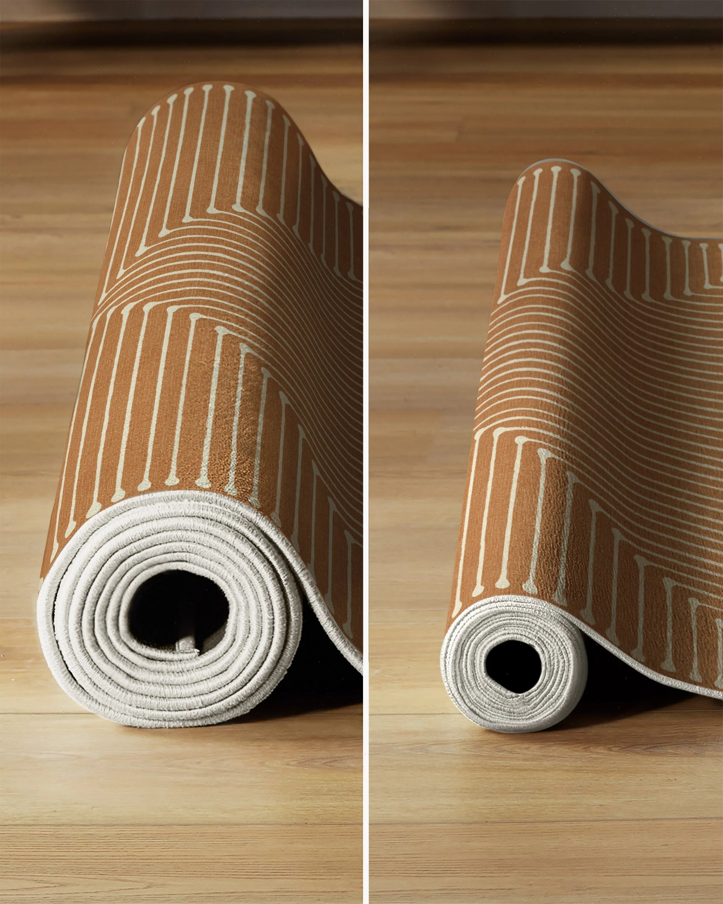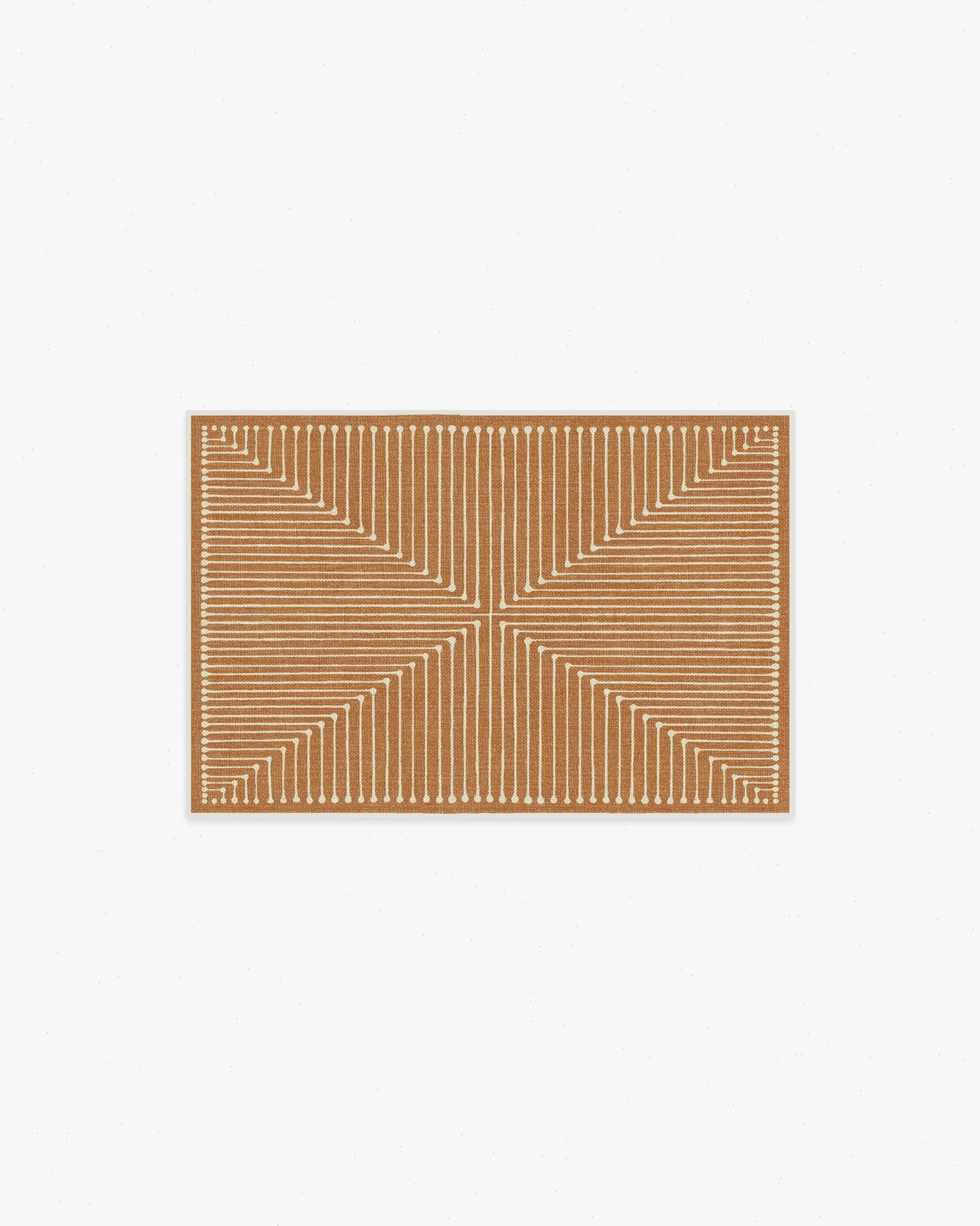Stripes get a chic makeover in the Jonathan Adler Inkdrop Copper Rug. Ink-inspired lines form a striped, geometric pattern on this rust orange and ivory rug. Water-resistant, stain-resistant, and machine-washable. Rug colors may vary slightly according to your device and the lighting in your space.