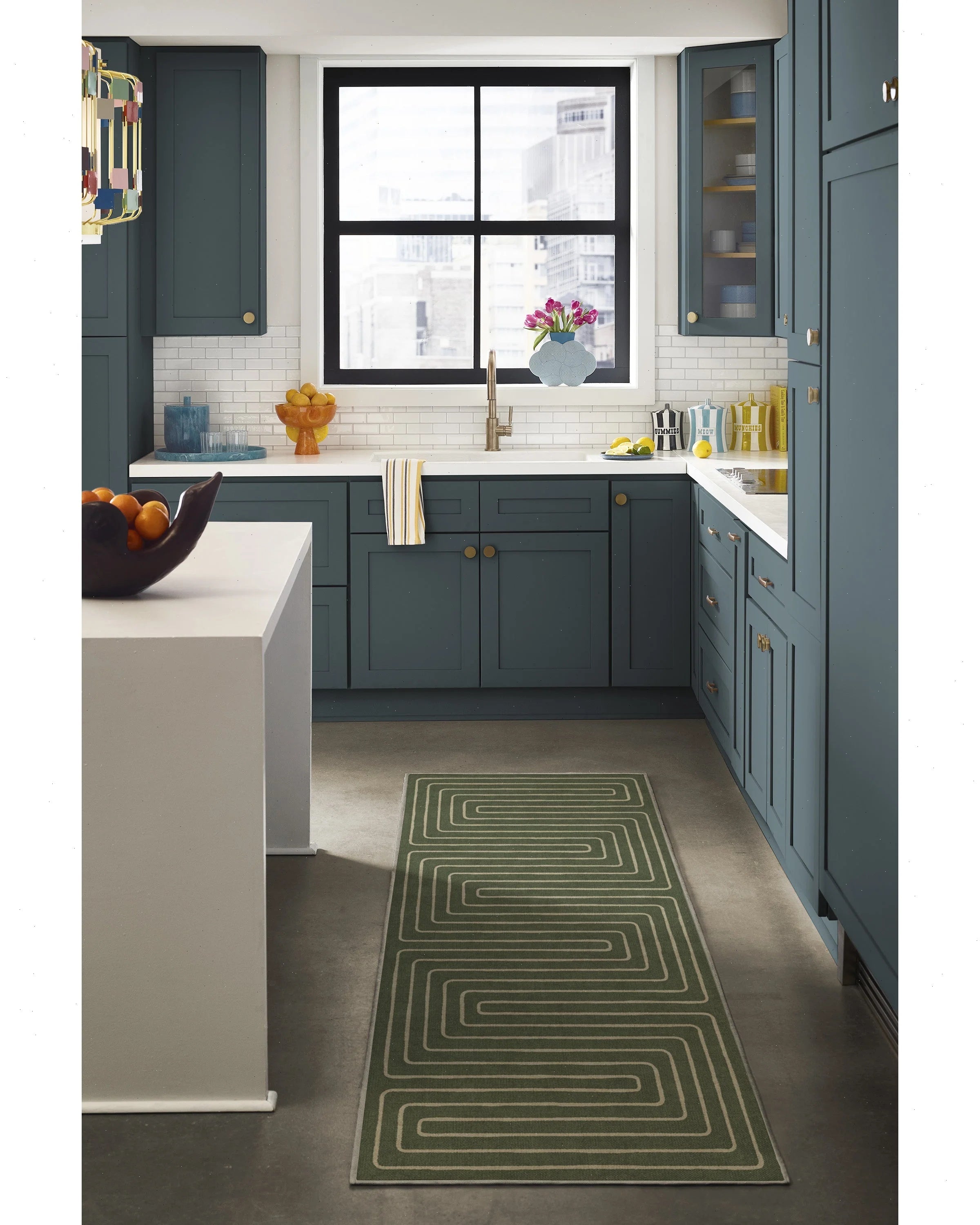 Practicality rules the kitchen. A runner near the sink adds comfort and peace of mind for spills.