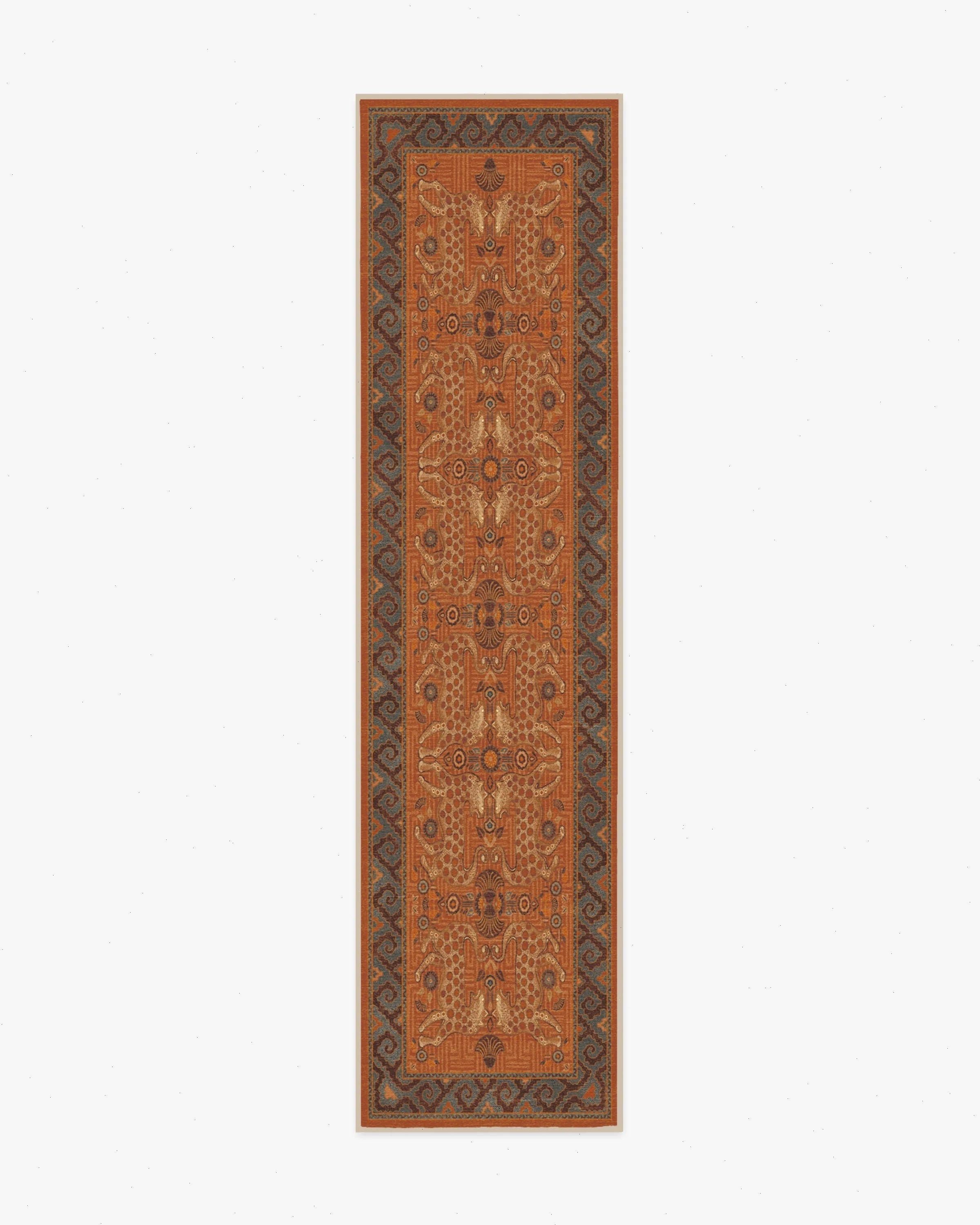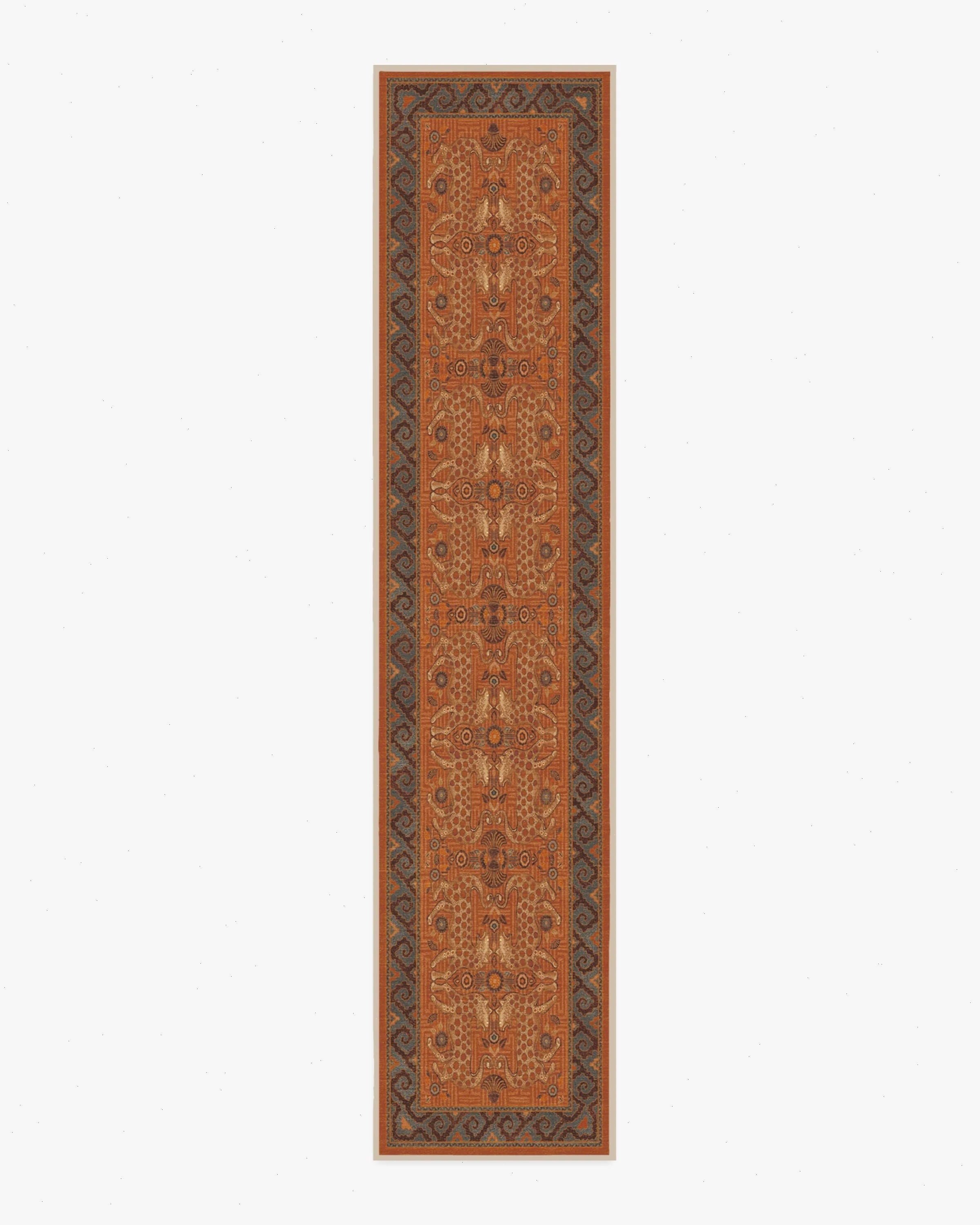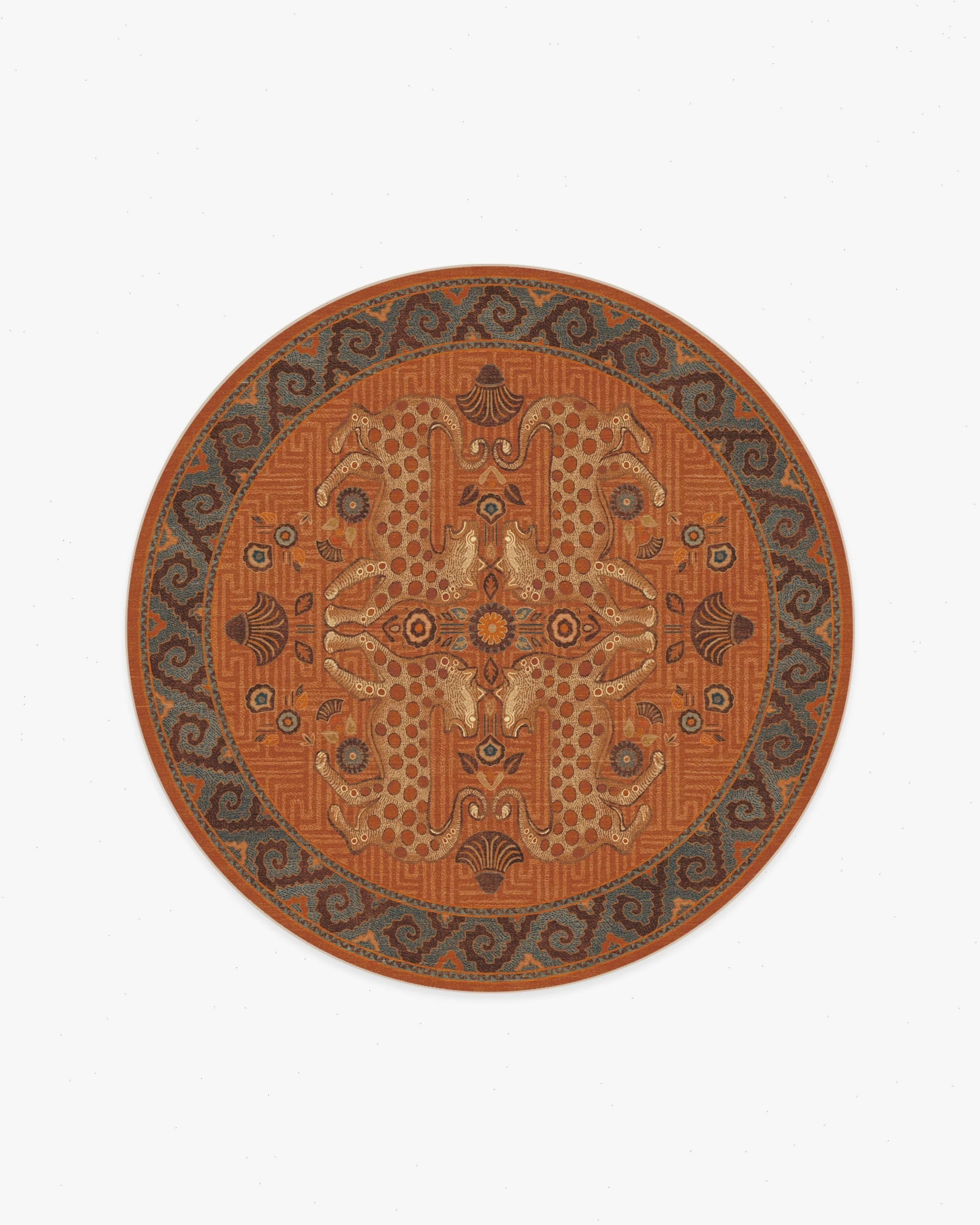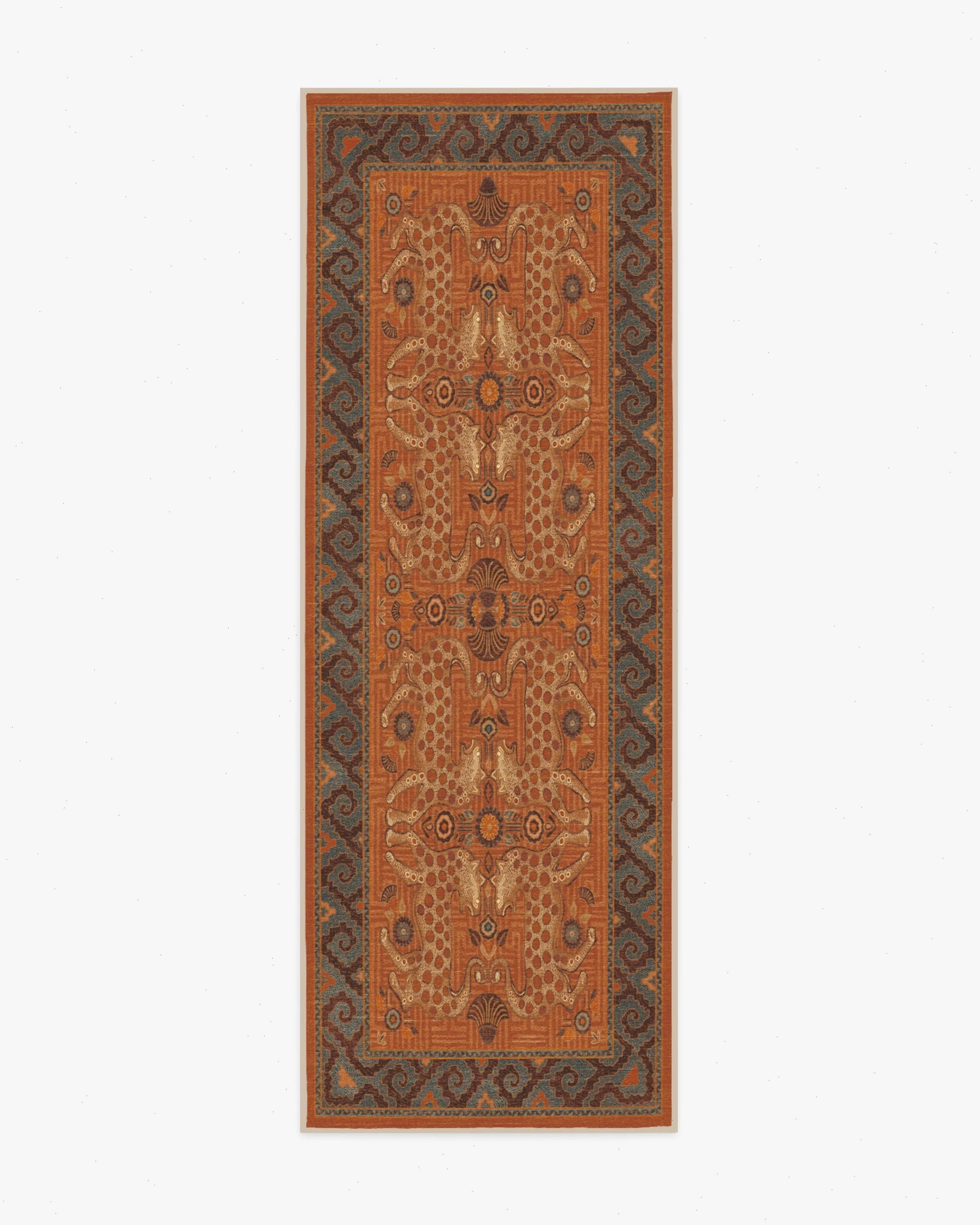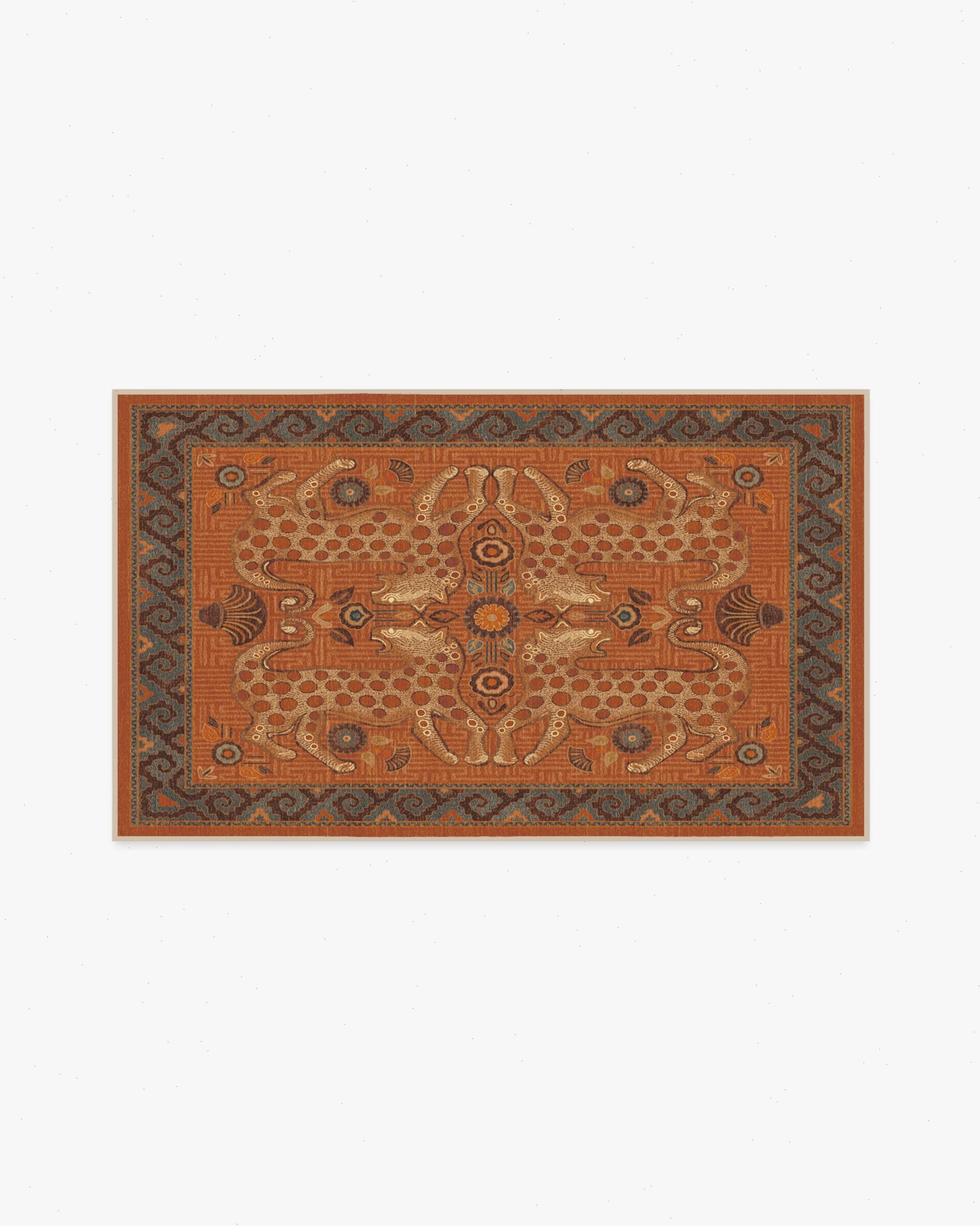 Sea meets sand with our Justina Blakeney Eartha Terracotta Rug. Inspired by the mystique of wild leopards and skillfully illustrated by Justina herself, this lively rug tells a story through its shell and floral motifs that symbolize protection and growth. The color palette pairs warm tones like terracotta and chocolate brown with dusty blues and bright teal to evoke the power of earth and sky. Water-resistant, stain-resistant, and machine-washable. Rug colors may vary slightly according to your device and the lighting in your space.