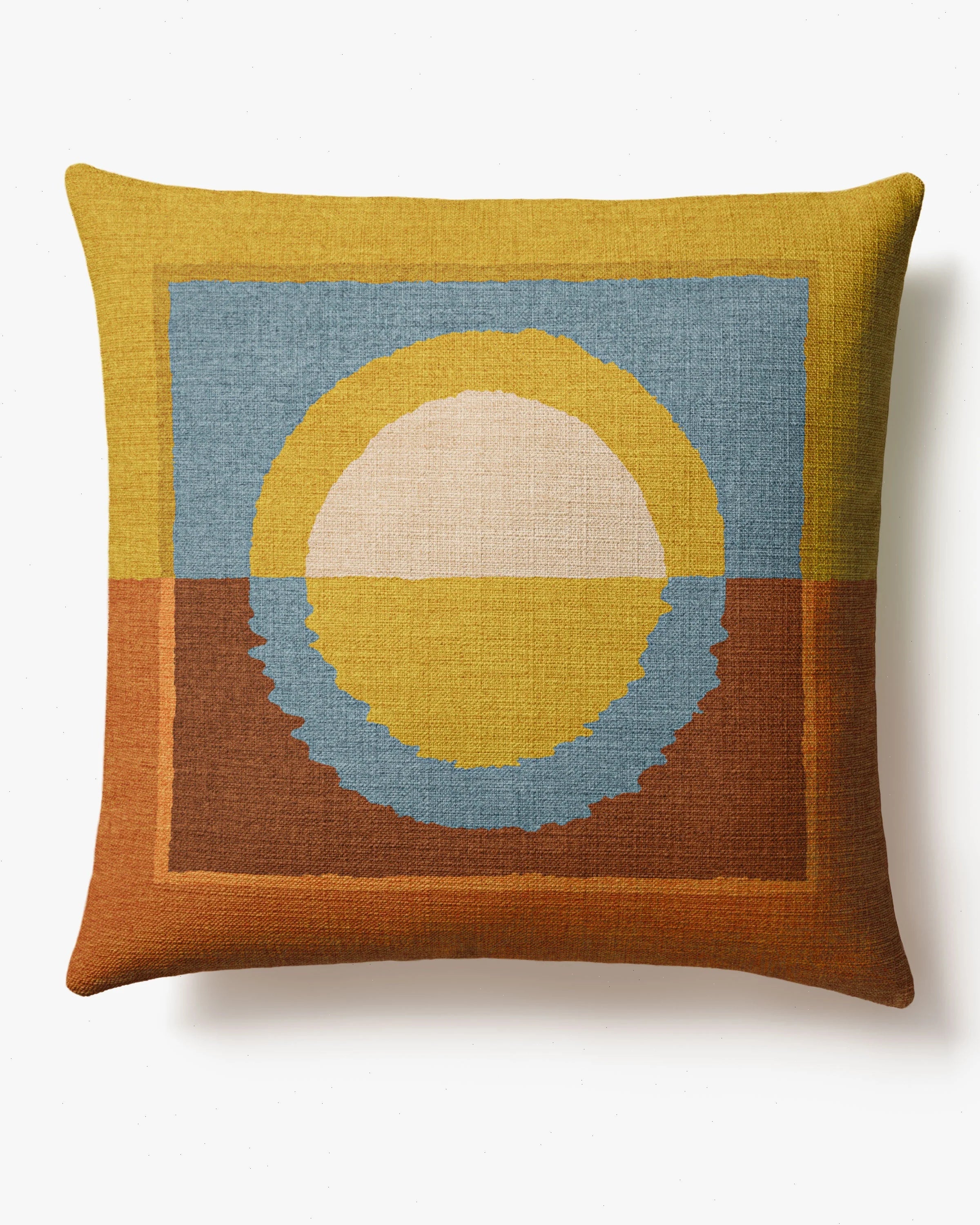 Capture the beauty of a setting sun with our Justina Blakeney Serene Multicolor Woven Throw Pillow. This zen-like design features an organic geometric pattern inspired by the calming reflection of the sun on water. Its soothing earth tones of ochre, rust, and hazy sky blue beautifully ground the motifs, adding tranquility and comfort to your sofa, bed, or chair. The machine-washable cover can be purchased with or without the water-resistant, stain-resistant insert. Pillow colors may vary slightly according to your device and the lighting in your space.
