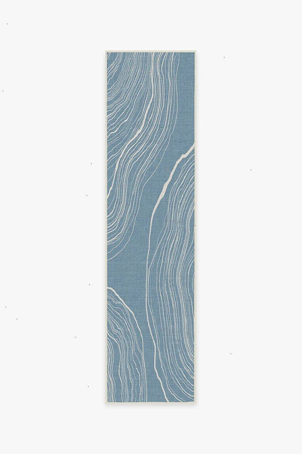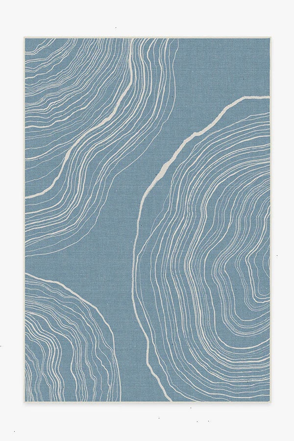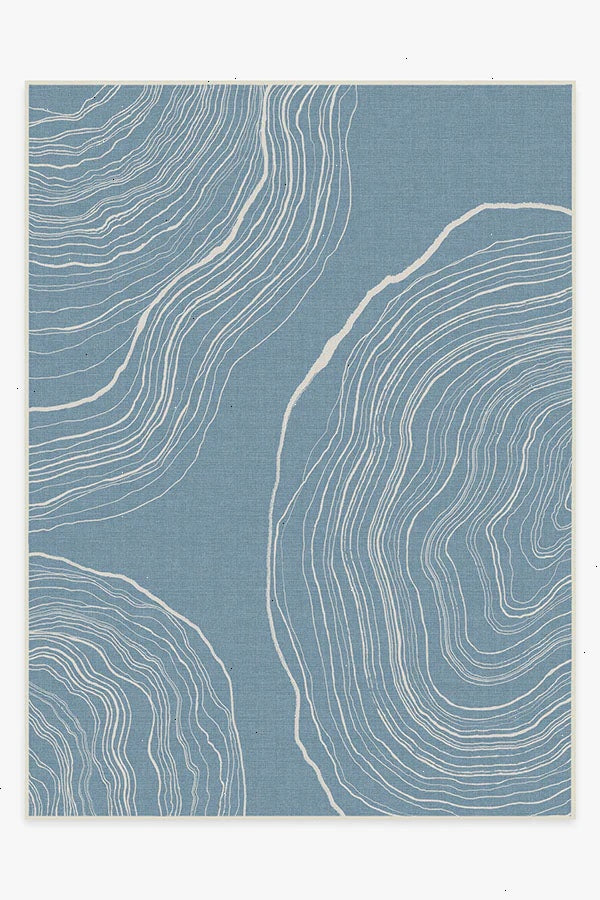 Enjoy the soothing feel of rippling water with our Kalder Slate Blue Rug. Featuring ethereal lines reminiscent of those found in tree bark, this rug includes ivory linework against a light and airy slate blue background, making it both delicate and playful. Made from our extra-durable, machine-washable material that's perfect for both outdoor and indoor use, especially high-traffic areas and those exposed to the elements. Rug colors may vary slightly according to your device and the lighting in your space.