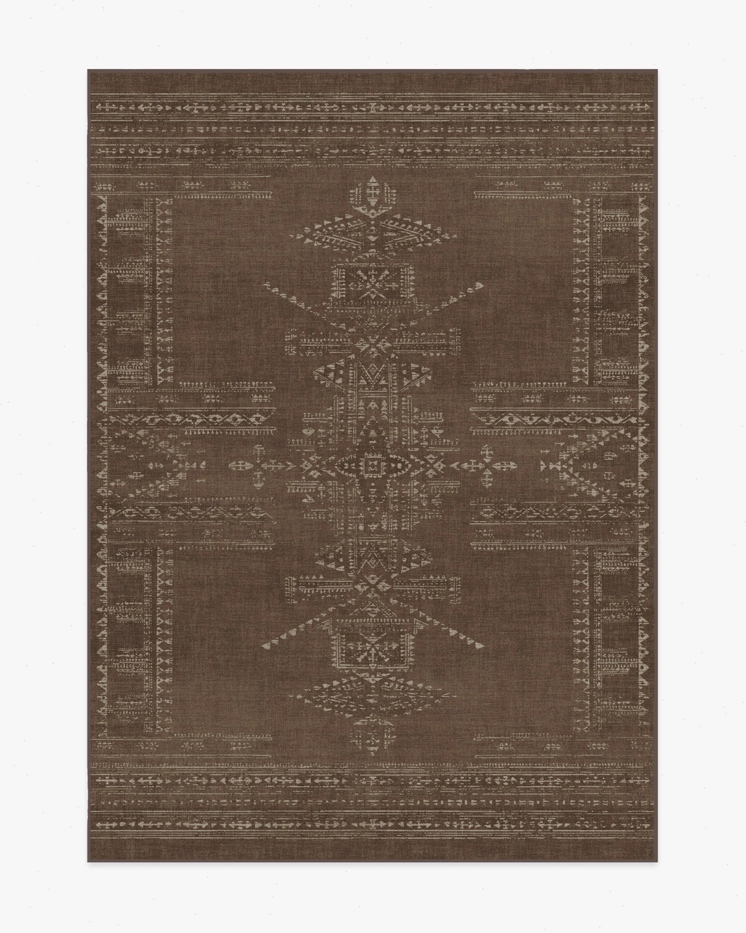 Our Martyn Lawrence Bullard Amira Brown Rug is made for gathering. Inspired by simple geometric forms and traditional woven rug layouts, this symmetrical design combines muted elegance and timeless tradition. Using a distressed overall effect for extra character, the light cream motifs, featuring highs and lows, are beautifully set against a dark brown background. Water-resistant, stain-resistant, and machine-washable. Rug colors may vary slightly according to your device and the lighting in your space.