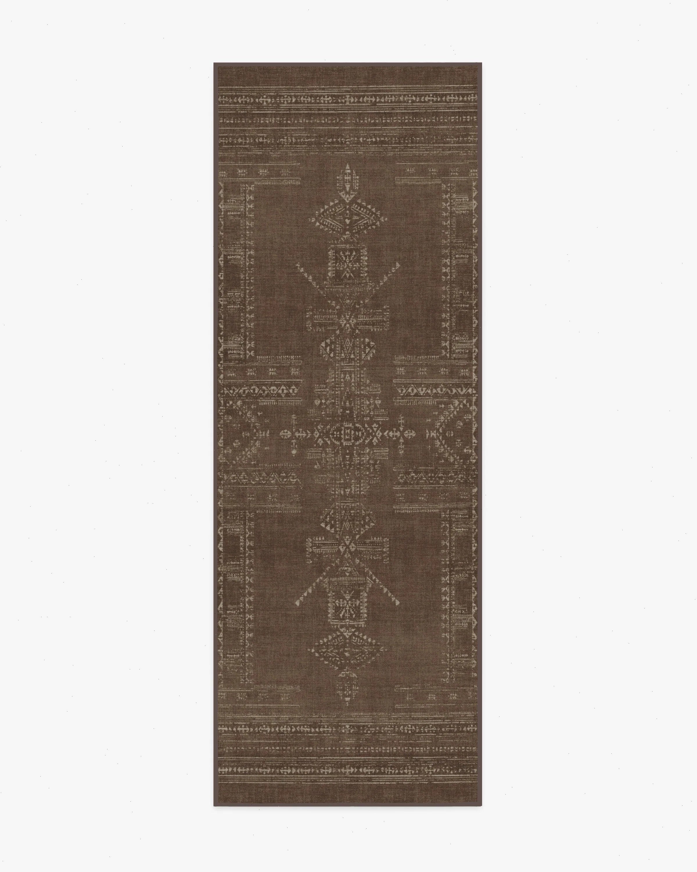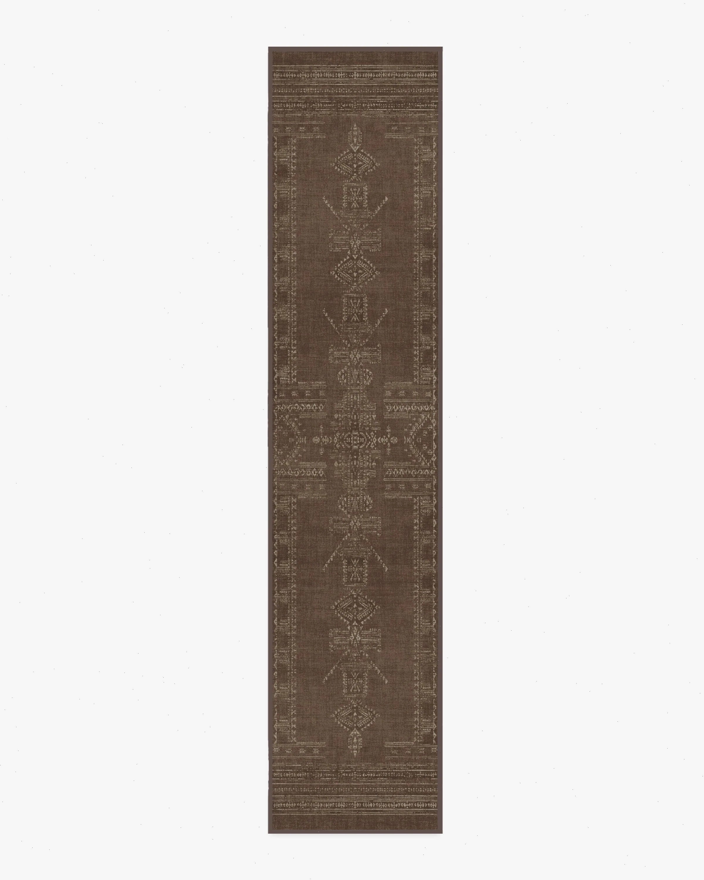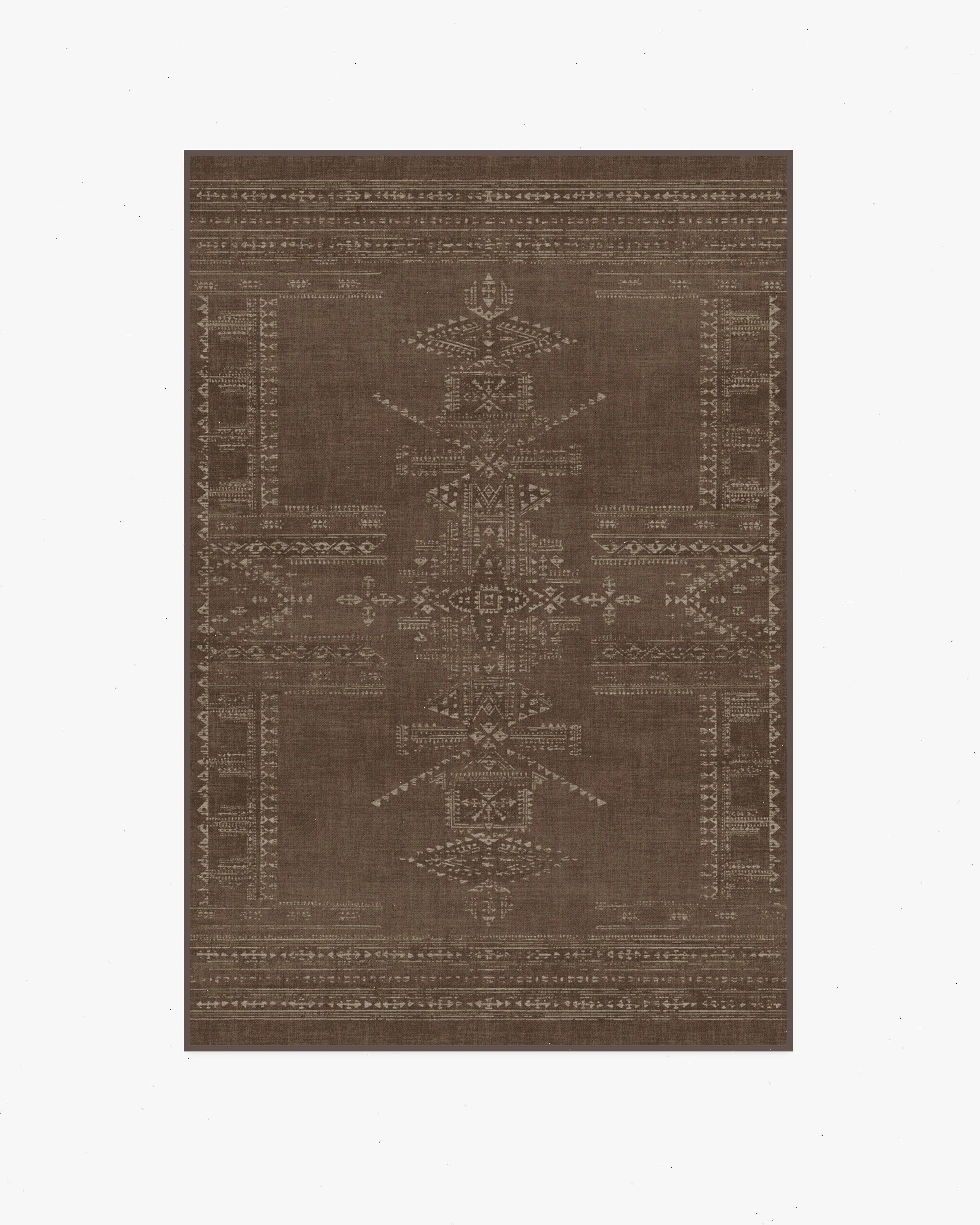 Our Martyn Lawrence Bullard Amira Brown Rug is made for gathering. Inspired by simple geometric forms and traditional woven rug layouts, this symmetrical design combines muted elegance and timeless tradition. Using a distressed overall effect for extra character, the light cream motifs, featuring highs and lows, are beautifully set against a dark brown background. Water-resistant, stain-resistant, and machine-washable. Rug colors may vary slightly according to your device and the lighting in your space.