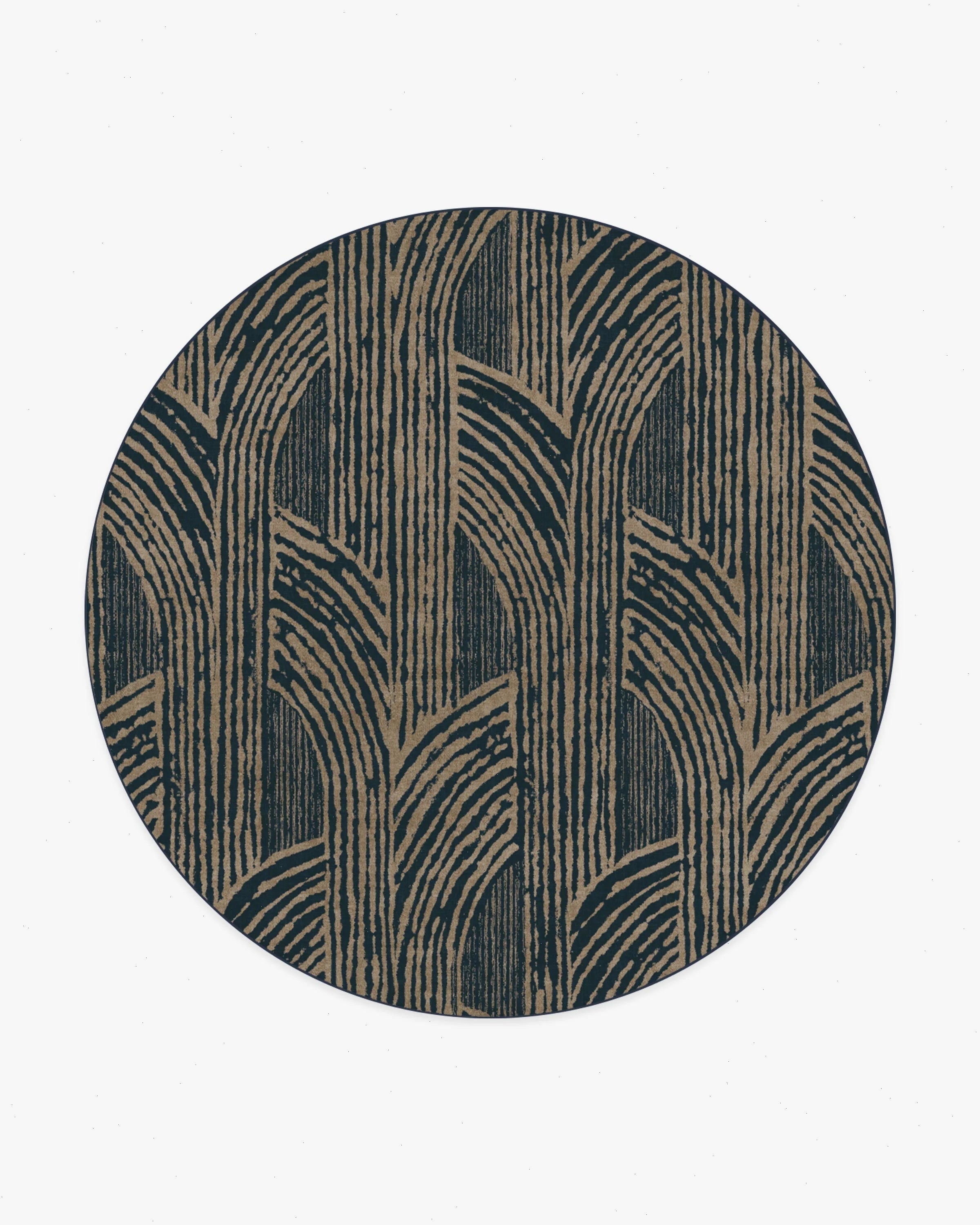 Unlock celebrity style with our Martyn Lawrence Bullard Beni Blue Rug. Featuring textural arches and irregular linework that create a dynamic, organic feel, this large-scale pattern makes a strong statement, combining soft curves with sharp edges. Light warm beige tones delicately stand out against a deep blue background, creating a balance of warmth and depth. Water-resistant, stain-resistant, and machine-washable. Rug colors may vary slightly according to your device and the lighting in your space.