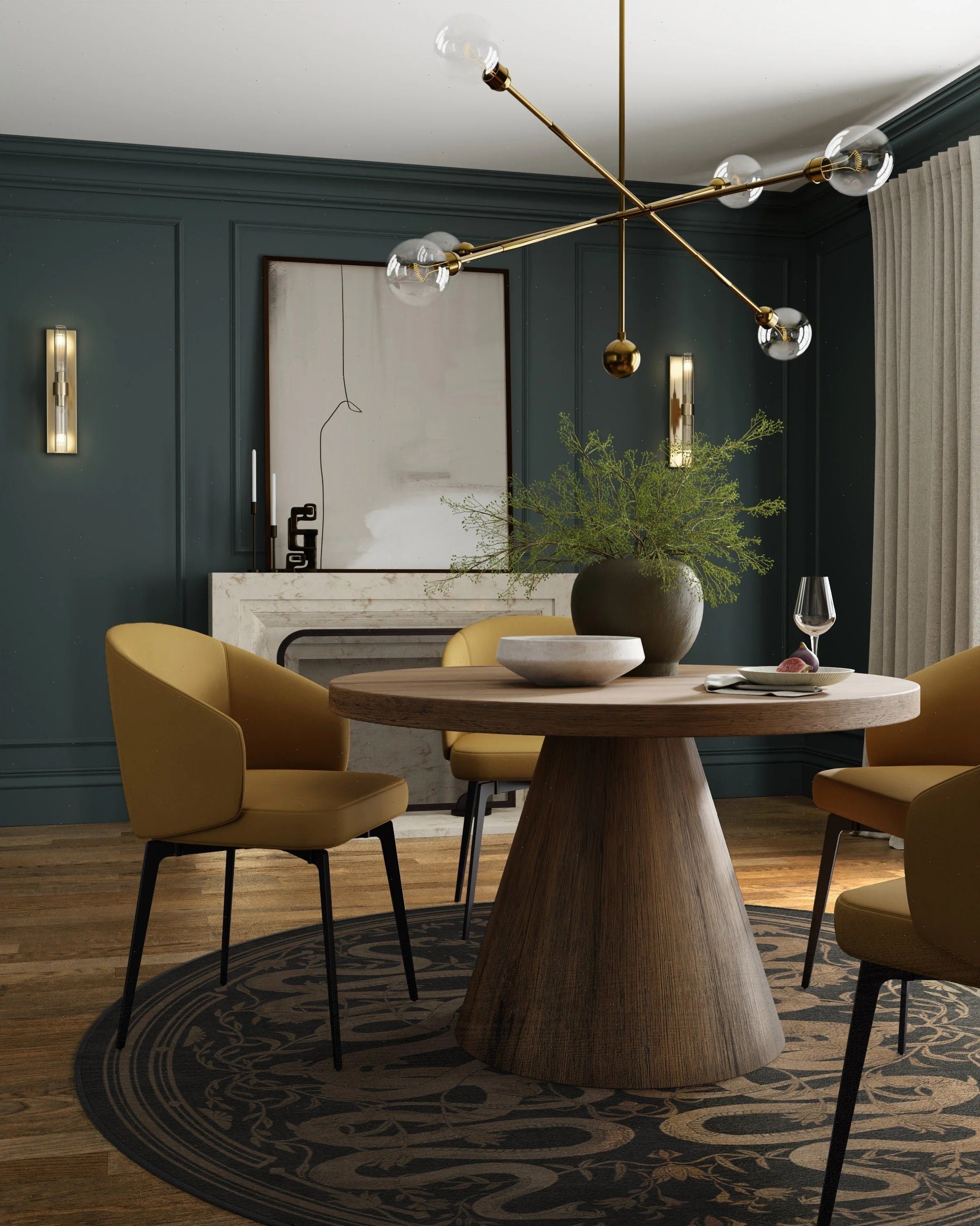 Rule of thumb: Select a rug 4 feet longer and wider than your table so chairs stay on the rug when pulled out.