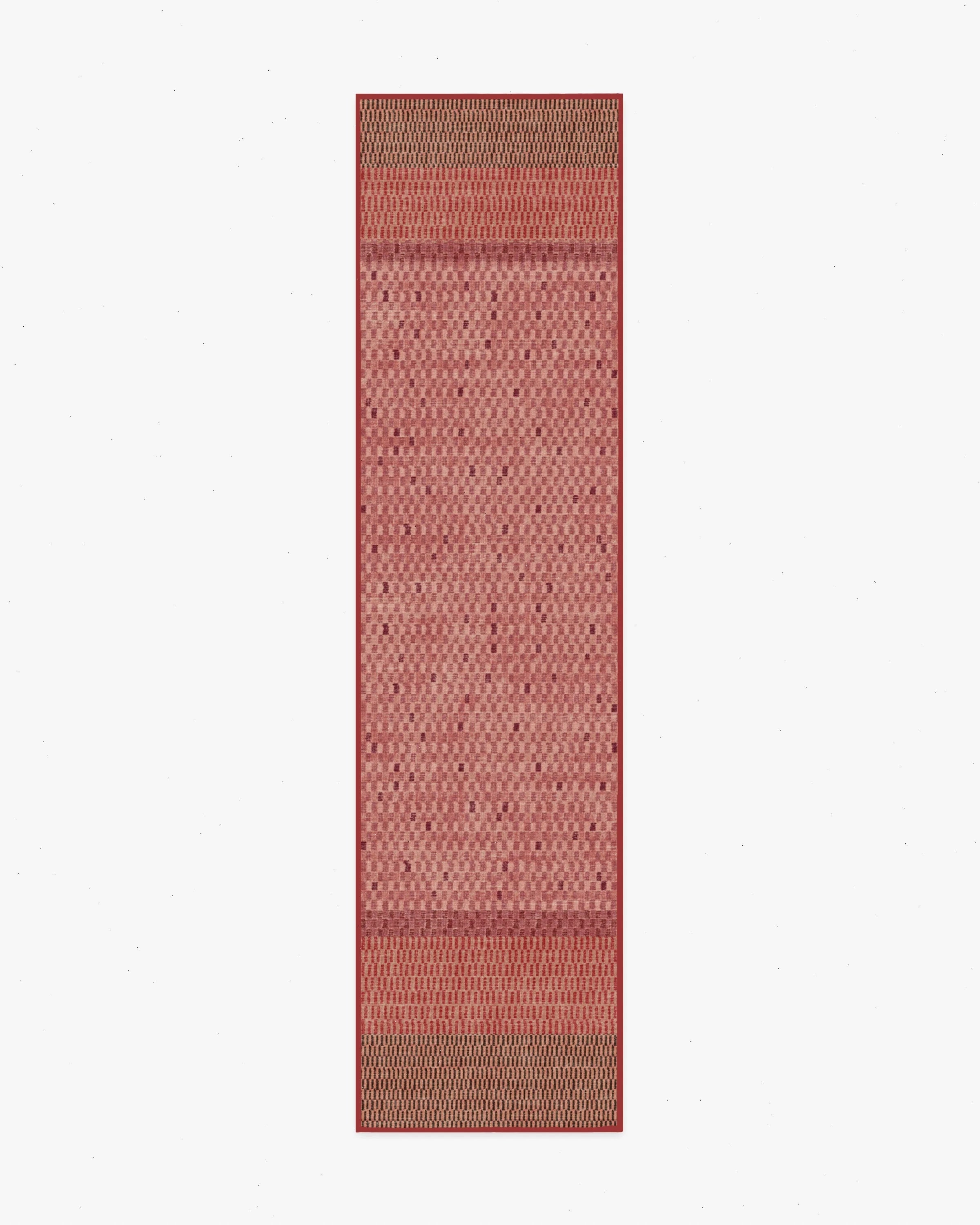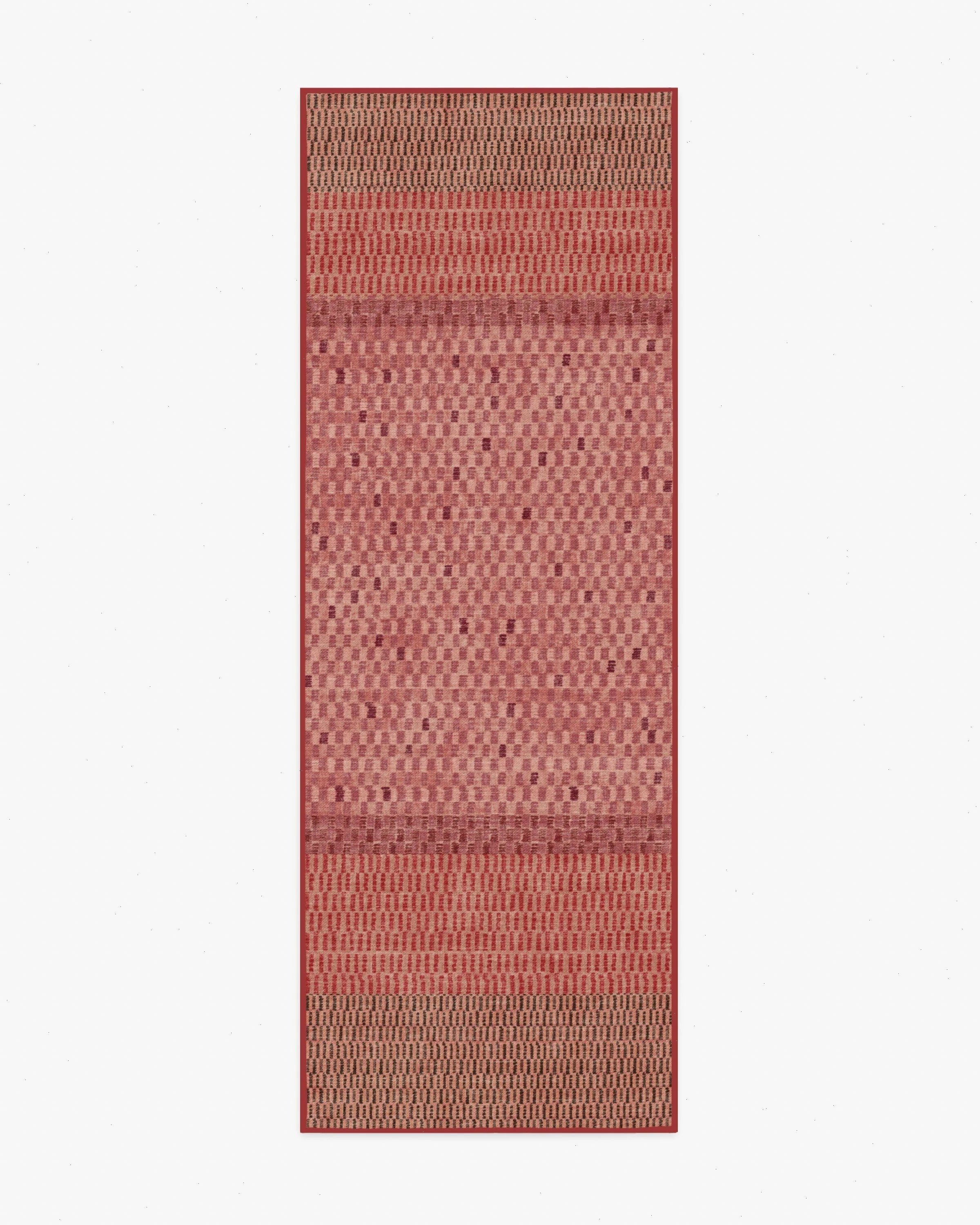Boho chic just got an upgrade. The Mesa Check Red Rug showcases shifting checkerboard motifs that play with scale for a relaxed, graphic look. A dusty pink ground is layered with cranberry tones and soft charcoal accents for subtle contrast. Water-resistant, stain-resistant, and fully machine-washable. Colors may vary by device and lighting.