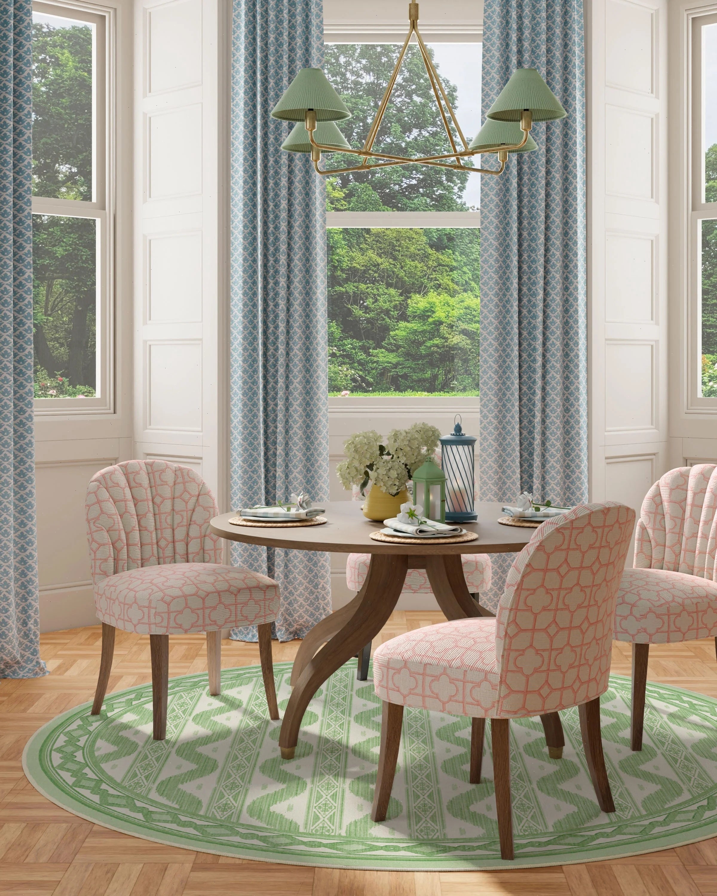 Rule of thumb: Select a rug 4 feet longer and wider than your table so chairs stay on the rug when pulled out.
