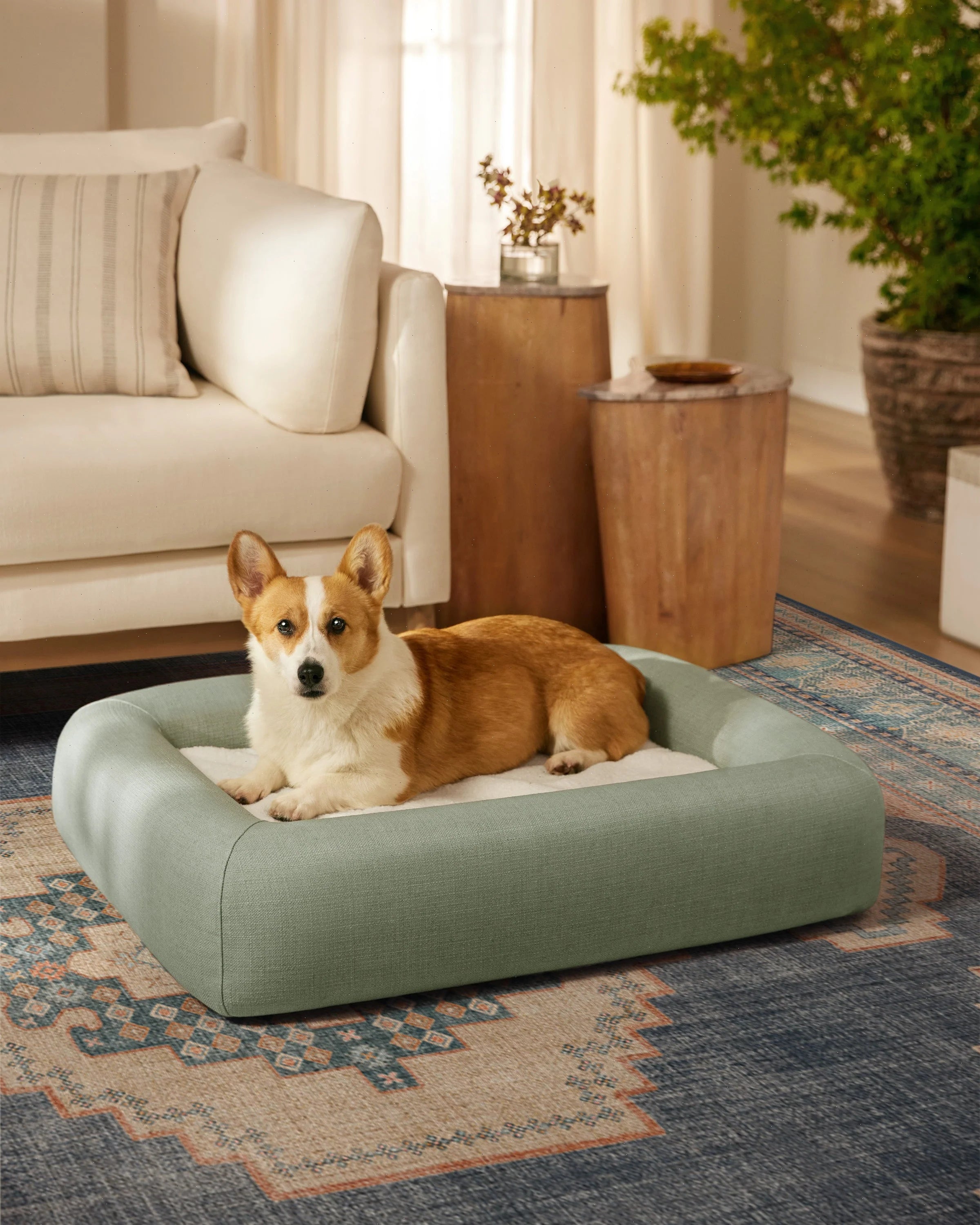 Meet the always clean, easy to style, Sage Green Woven Bolster Pet Bed. Inspired by nature's elegant earth tones, this tranquil color adds subtle elegance to any space. Let your pet cozy up on the sherpa mattress for a sound sleep. Machine-washable outer covers with water-resistant, stain-resistant mattress and bolster cushions. Pet bed colors may vary slightly according to your device and the lighting in your space.
