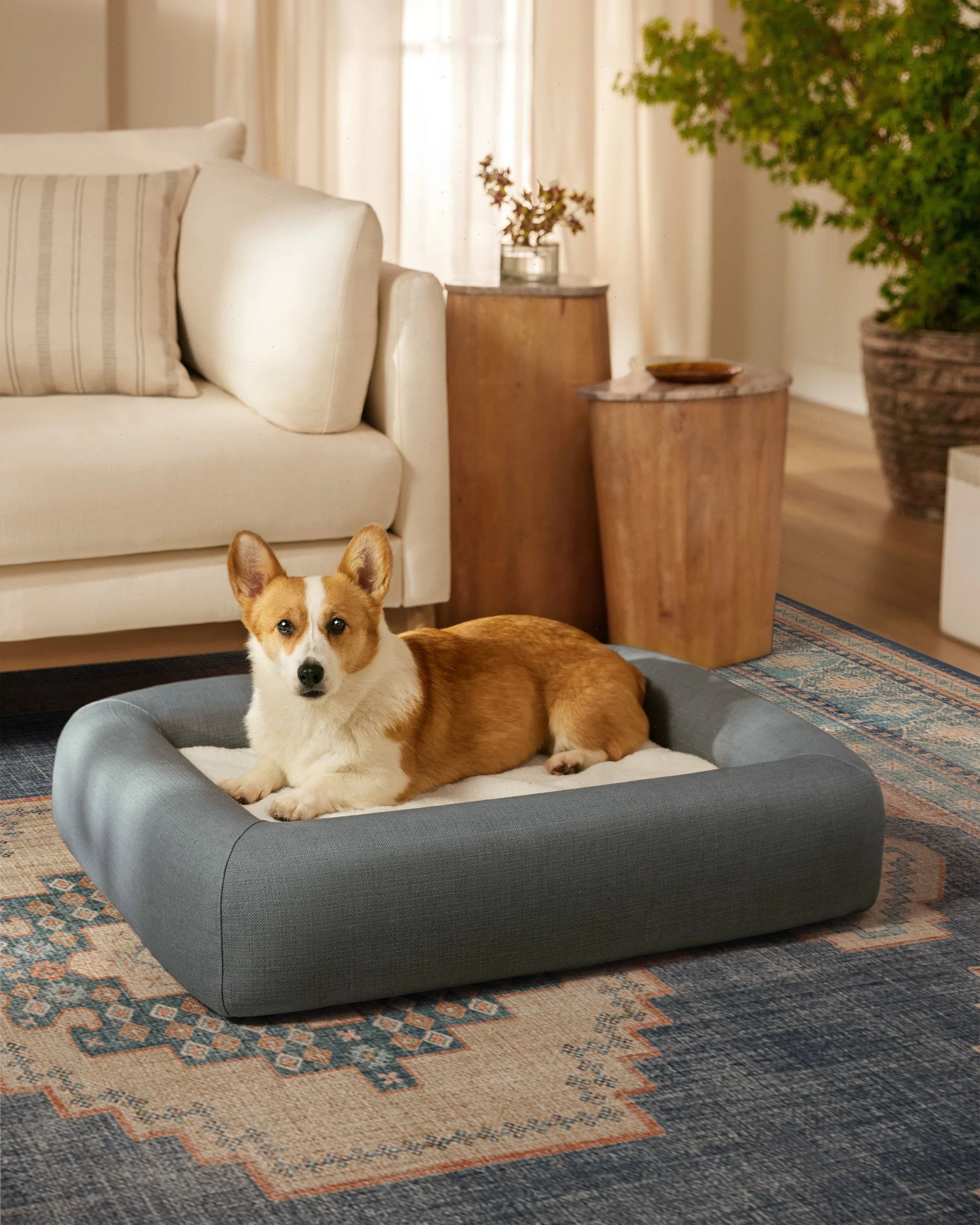 Meet the always clean, easy to style, Stone Grey Woven Bolster Pet Bed. This comforting grey inspires serenity and peace while complementing timeless decor. Let your pet cozy up on the sherpa mattress for a sound sleep. Machine-washable outer covers with water-resistant, stain-resistant mattress and bolster cushions. Pet bed colors may vary slightly according to your device and the lighting in your space.