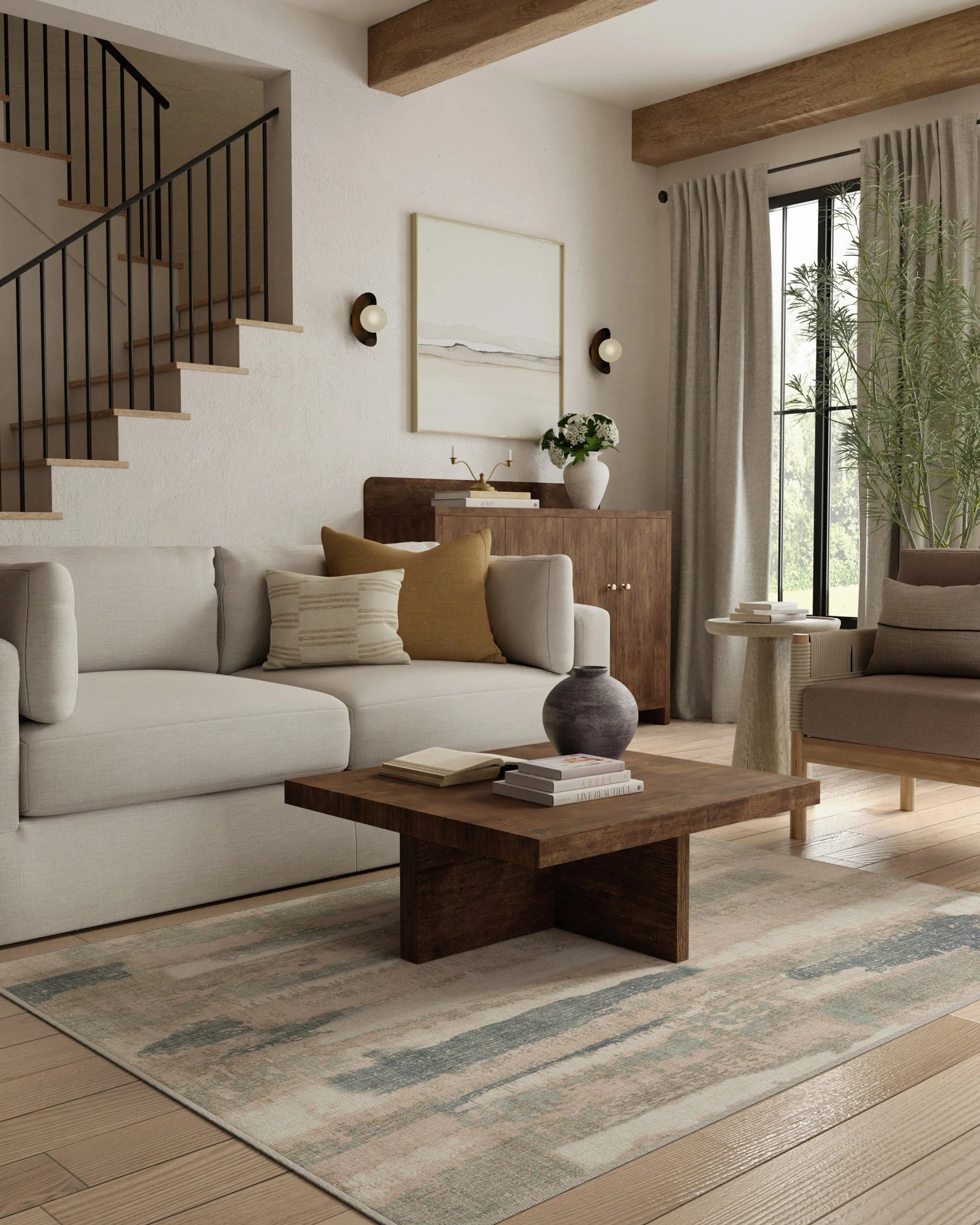Practicality rules the kitchen. A runner near the sink adds comfort and peace of mind for spills.