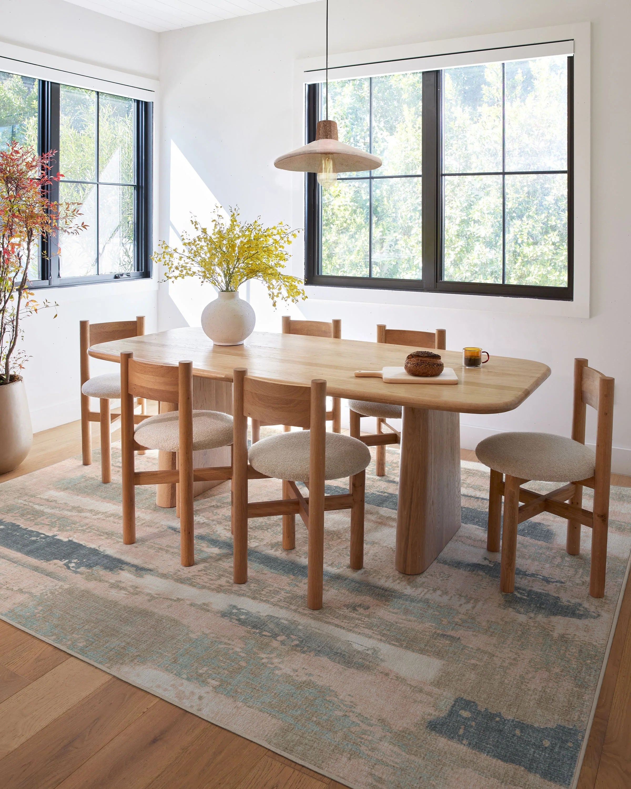 Rule of thumb: Select a rug 4 feet longer and wider than your table so chairs stay on the rug when pulled out.