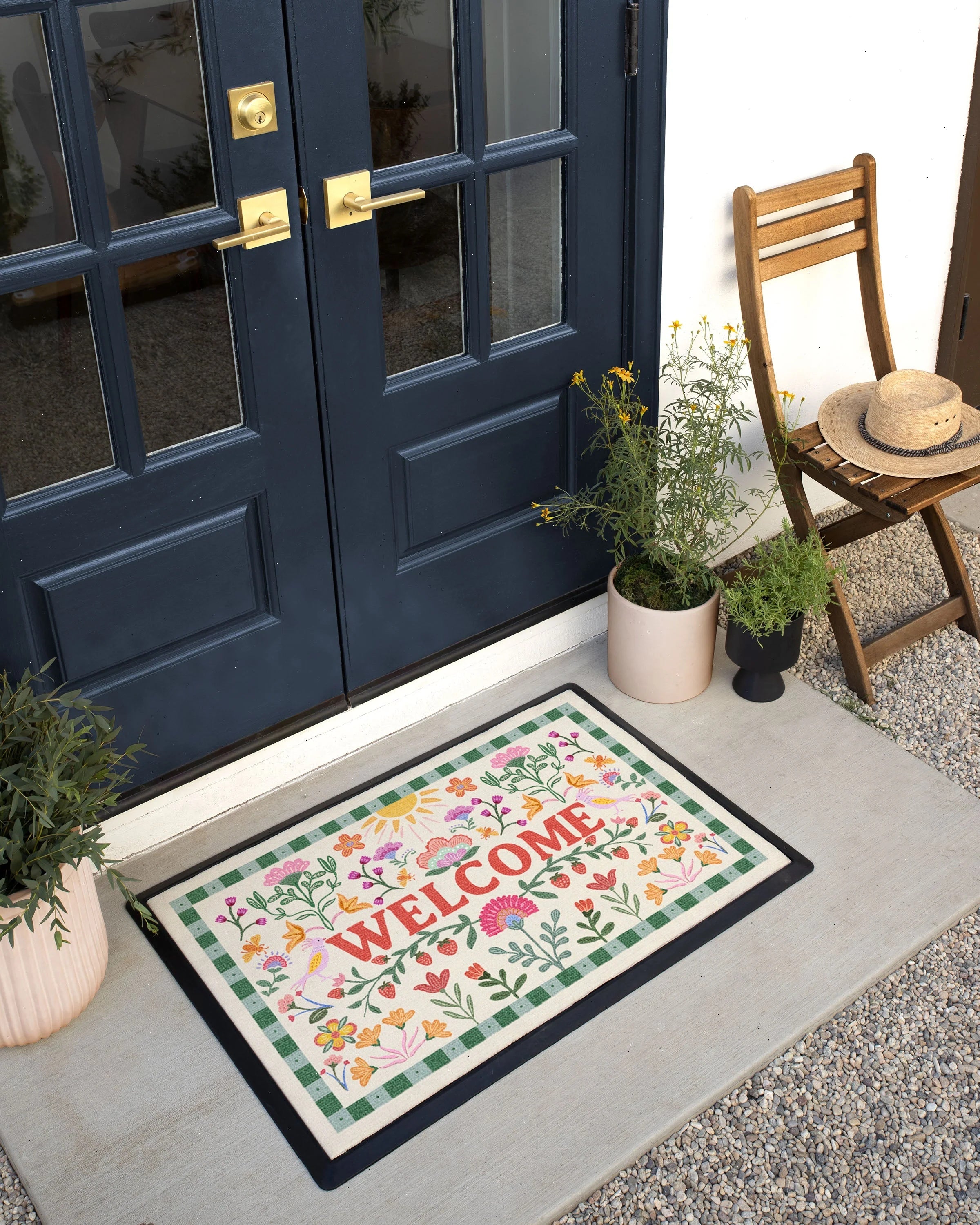 Spring has officially sprung. The Welcome Sunshine Doormat lets the sunshine in with a blooming meadow garden in soft, uplifting tones. Budding florals and buzzing bees dynamically move throughout as symbols of renewal and growth. Set on a light cream ground with gentle pinks, corals, greens, and yellows, it lays the foundation for new, warm beginnings. Made with durable, machine-washable material that’s mold- and fade-resistant. Colors may vary by device and lighting.